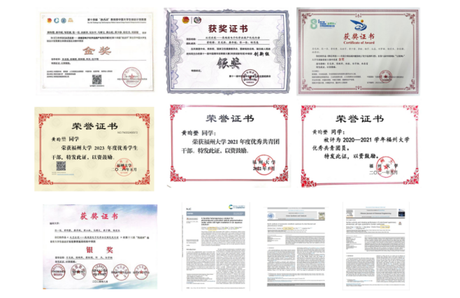 “优秀学生干部”、“优秀共青团干部”、“优秀共青团员”称号等荣誉。