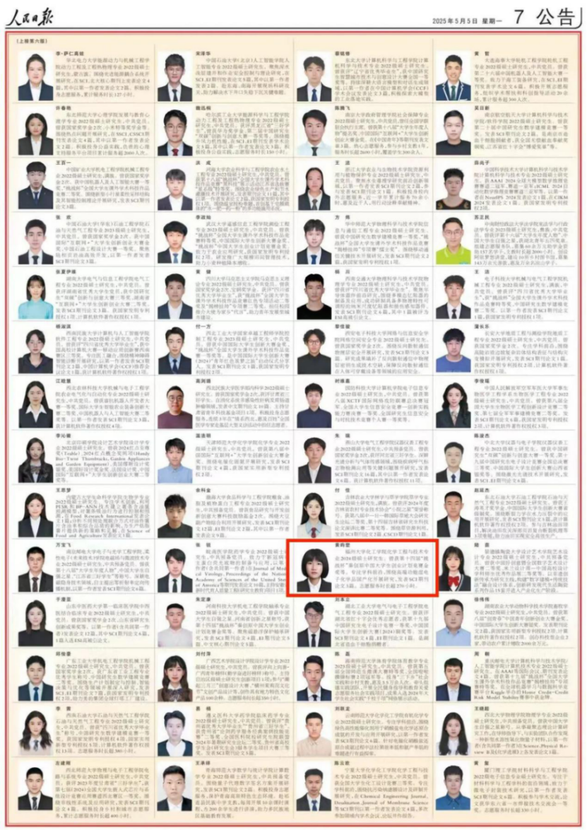 化学工程与技术专业2024级硕士研究生黄昀壄荣登该名录