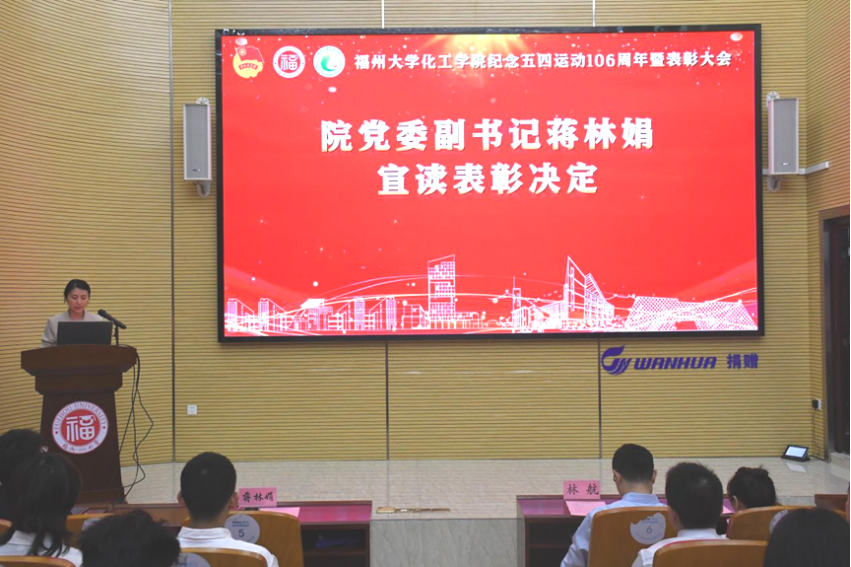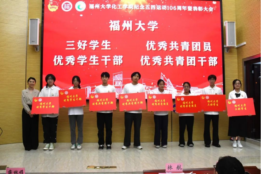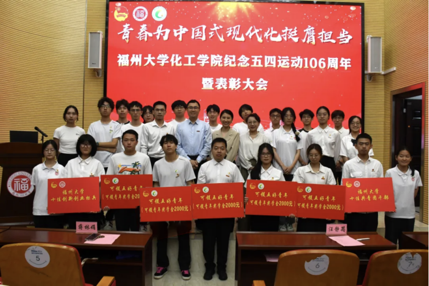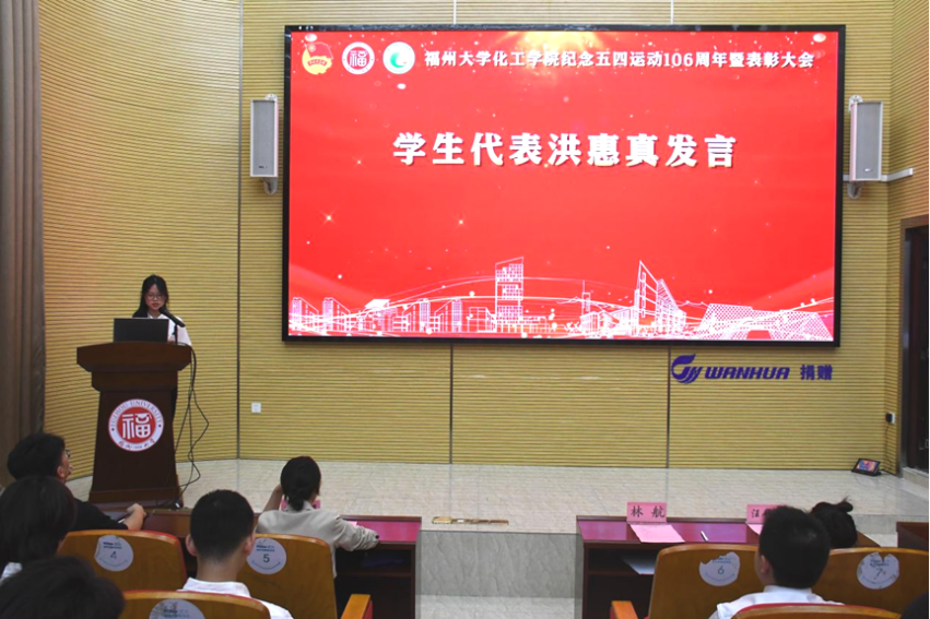 学生代表洪惠真结合自身经历,分享了在科研、学生工作及志愿服务中的成长感悟,号召化工学子怀揣梦想、勇毅前行,在时代浪潮中贡献青春力量。随后,与会领导为获奖集体和个人代表颁奖,激励广大青年对标先进、奋发有为。