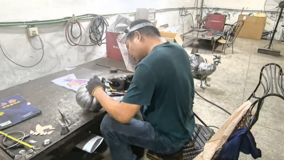 在泉州站,实践队员们走进安溪藤铁工艺产业园,了解富华公司从竹编到藤铁艺术的千年技艺转型。激光切割(误差≤0.5mm)、机械臂定型、氩弧焊连接、环保涂层等现代技术,将冷硬钢铁转化为兼具实用与艺术性的家居产品。展厅中,《共鸣》《雀之灵》等作品以金属语言演绎孔雀、公鸡等意象,实现传统纹样与现代审美的融合创新。设计总监尚总指出,藤铁工艺通过“经纬交织”的金属编织技法,既保留藤编柔韧美学,又以工业精度拓展应用场景。这种“古为今用、推陈出新”的实践,为乡村制造业注入科技与人文双重动能。