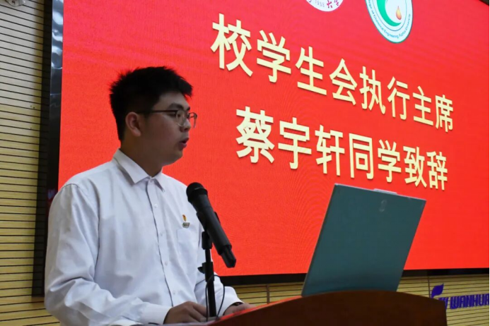 随后,校学生会执行主席蔡宇轩同学致辞。他代表校学生会对本次大会召开表示衷心祝贺,蔡宇轩充分肯定了 樱花动漫
