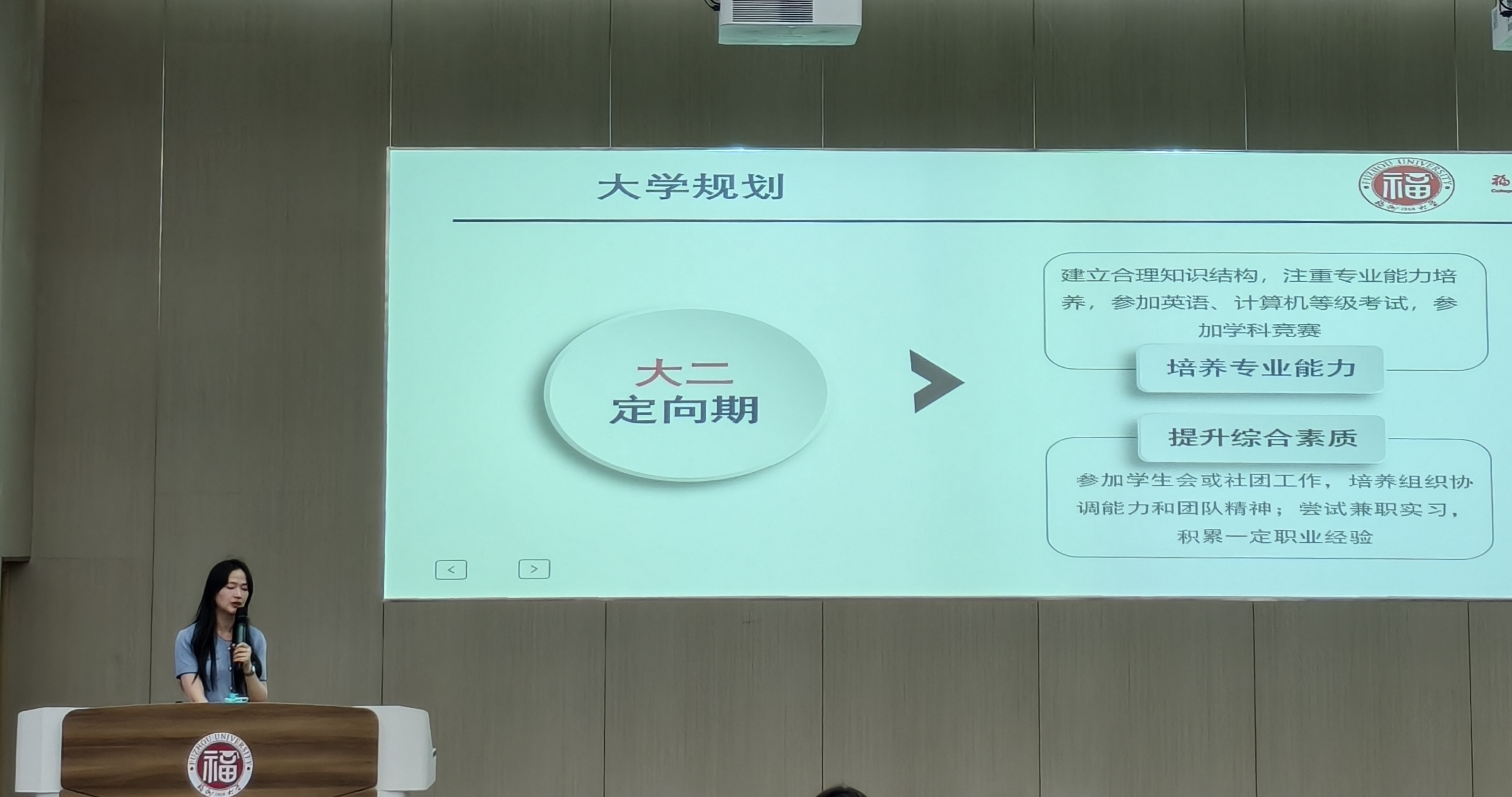葛雪惠老师从“主观适配+客观规划”双维度出发,阐释了化工在保障国家能源安全、推动新材料创新中的核心地位,引导新生结合自身特质与行业需求,制定阶段性目标,以目标导向规划学业生涯。