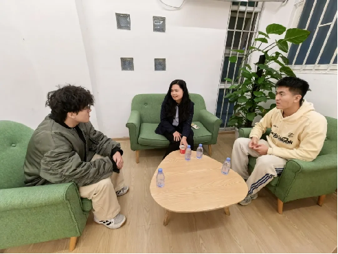活动结束后,叶志清部长一行前往位于博学苑A区27#的“可镁温暖社区”进行实地走访,查看了共享空间、生活设施及文化氛围建设情况。随后在辅导员值班室召开座谈会,与学院领导围绕优化社区功能、提升服务效能、深化环境育人等议题进行交流。叶部长对社区在党建引领下整合资源、服务学生成长等方面取得的成效予以肯定,强调要坚持以学生为中心,夯实治理基础,完善共建共治共享机制,将学生社区打造为思想引领、学业助力和生活服务的重要阵地。