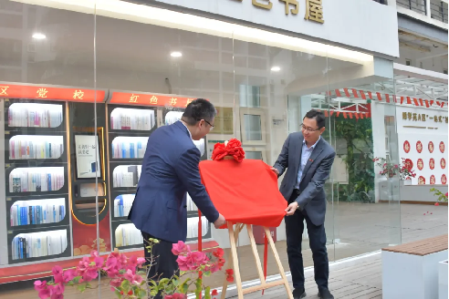揭牌仪式环节,叶志清部长、林航书记共同为“福大大梦”学生社区流动书屋揭牌。随着红绸缓缓揭开,“福大大梦”流动书屋正式落地博学苑A区!智慧红色书屋藏书结构进一步优化,社区文化资源供给能力显著增强。