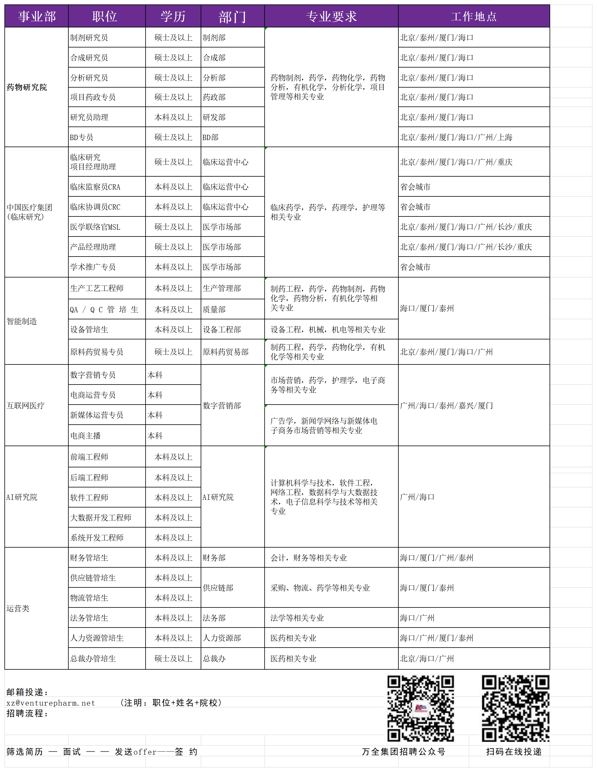 万全万特制药(厦门)有限公司招聘简章