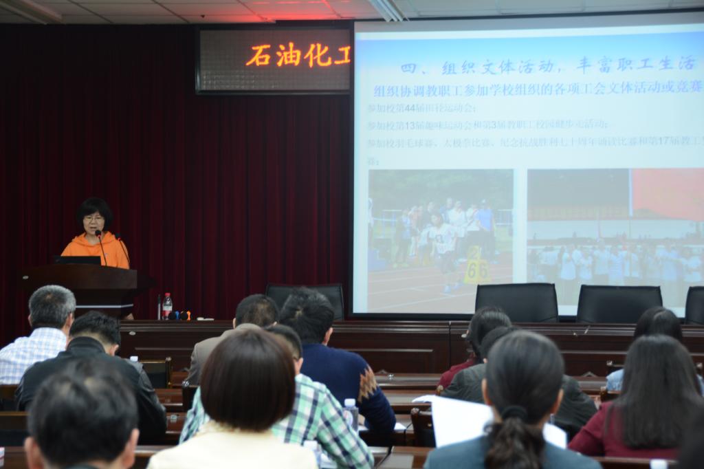 会上,赵素英主席代表一届工会委员会作2015年度工作报告,总结了一年来工会在加强自身建设、接受评估、培养青年教师、关心教职工及丰富职工生活等方面的工作,并汇报了2016年的工作计划。