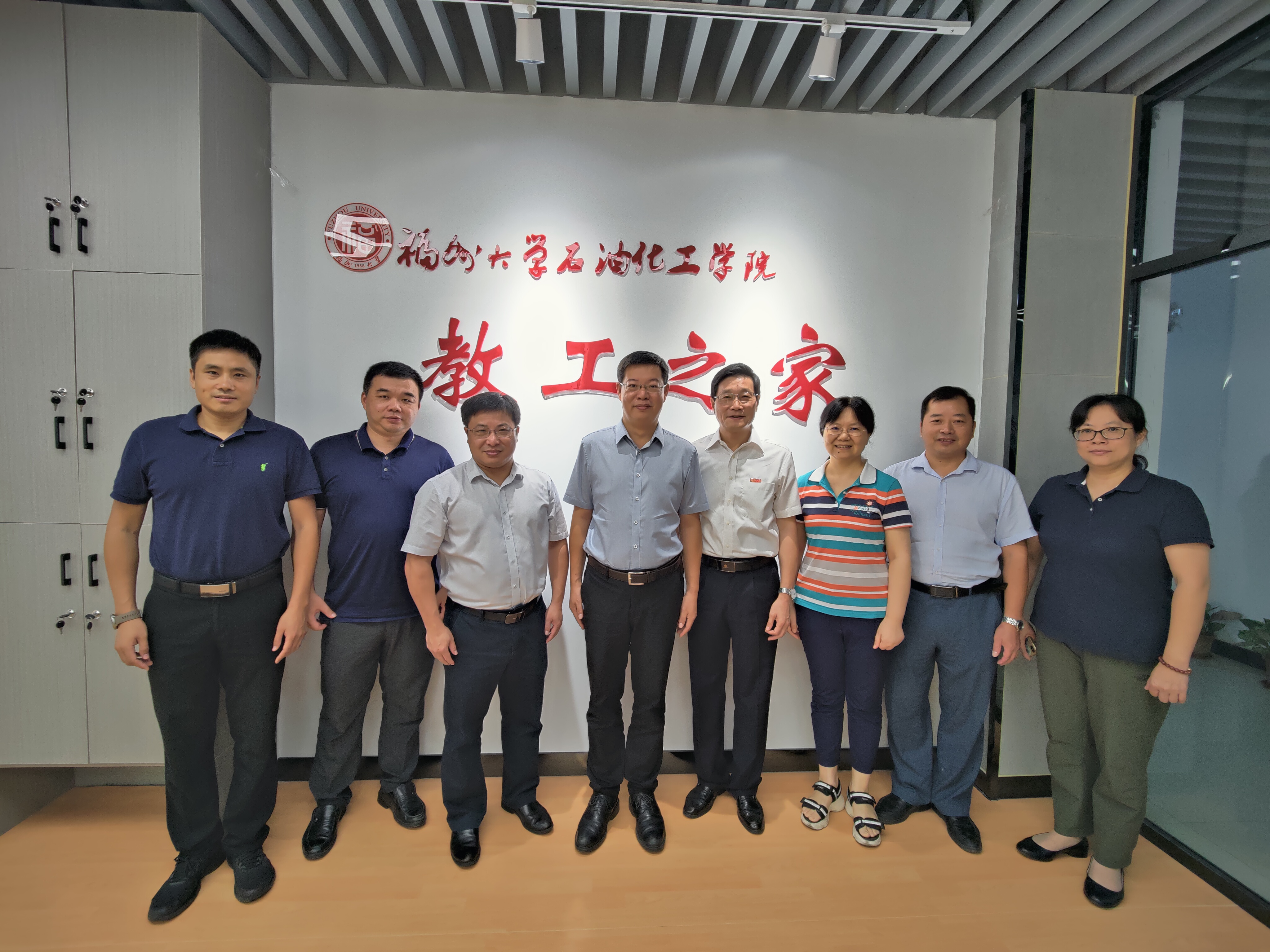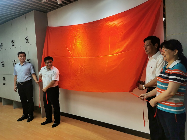 教工之家(旗山校区)揭牌仪式。校工会副主席陈硕教授、学院党委施卫华书记、院长江莉龙研究员、院工会主席赵素英教授共同揭牌,学院其他领导参加了揭牌仪式。