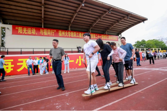 “提绳踏板”以团队合作的形式进行速度的角逐,学院教职工们步调一致,团结一心。