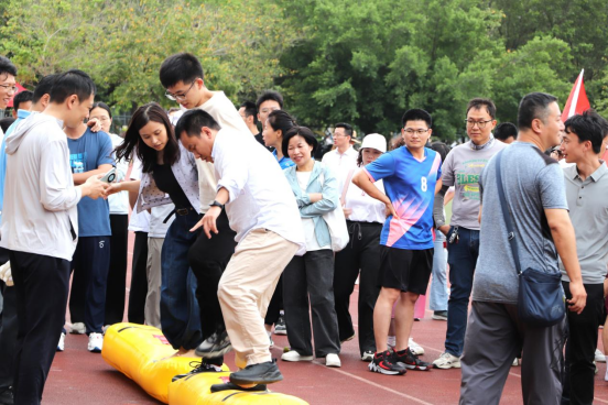 趣味运动会所设项目趣味性强又不失挑战,“集体跳绳”不仅考验身体素质又考验团队协作能力,学院教职工团结一心,合作默契。