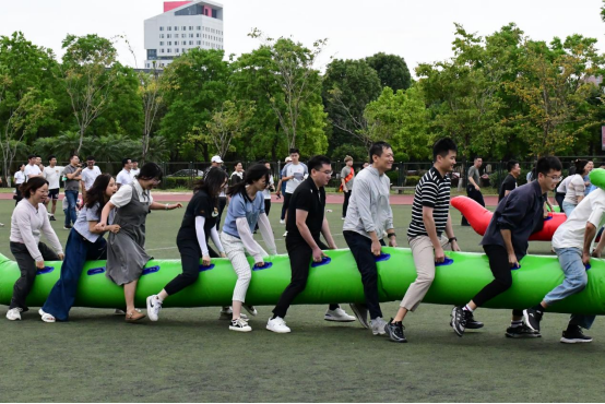 “同舟共济”项目以“平衡力”掌握为胜负的关键,极大考验了团队配合和协调能力,学院教职工赛出了风采赛出了精神。