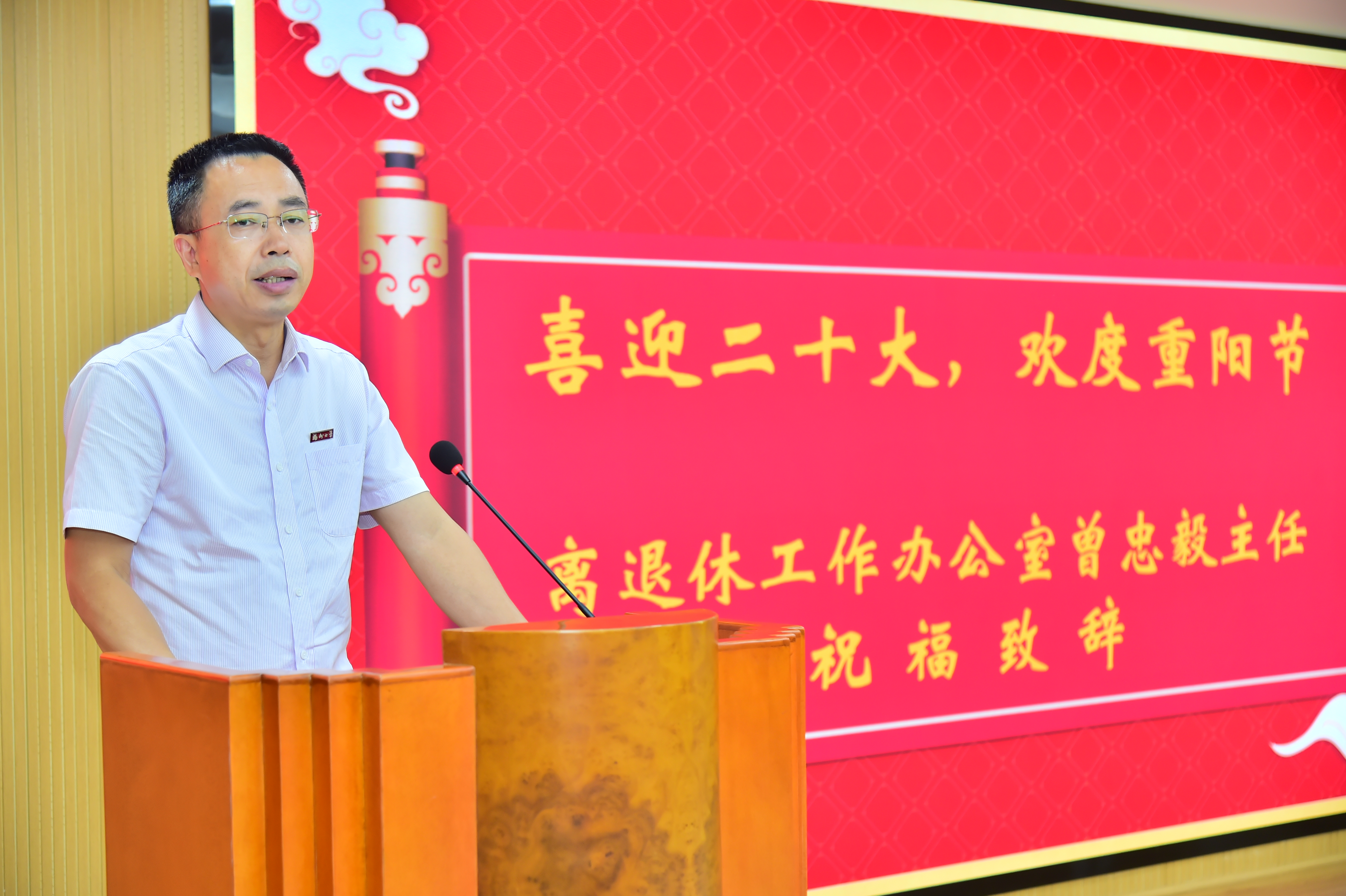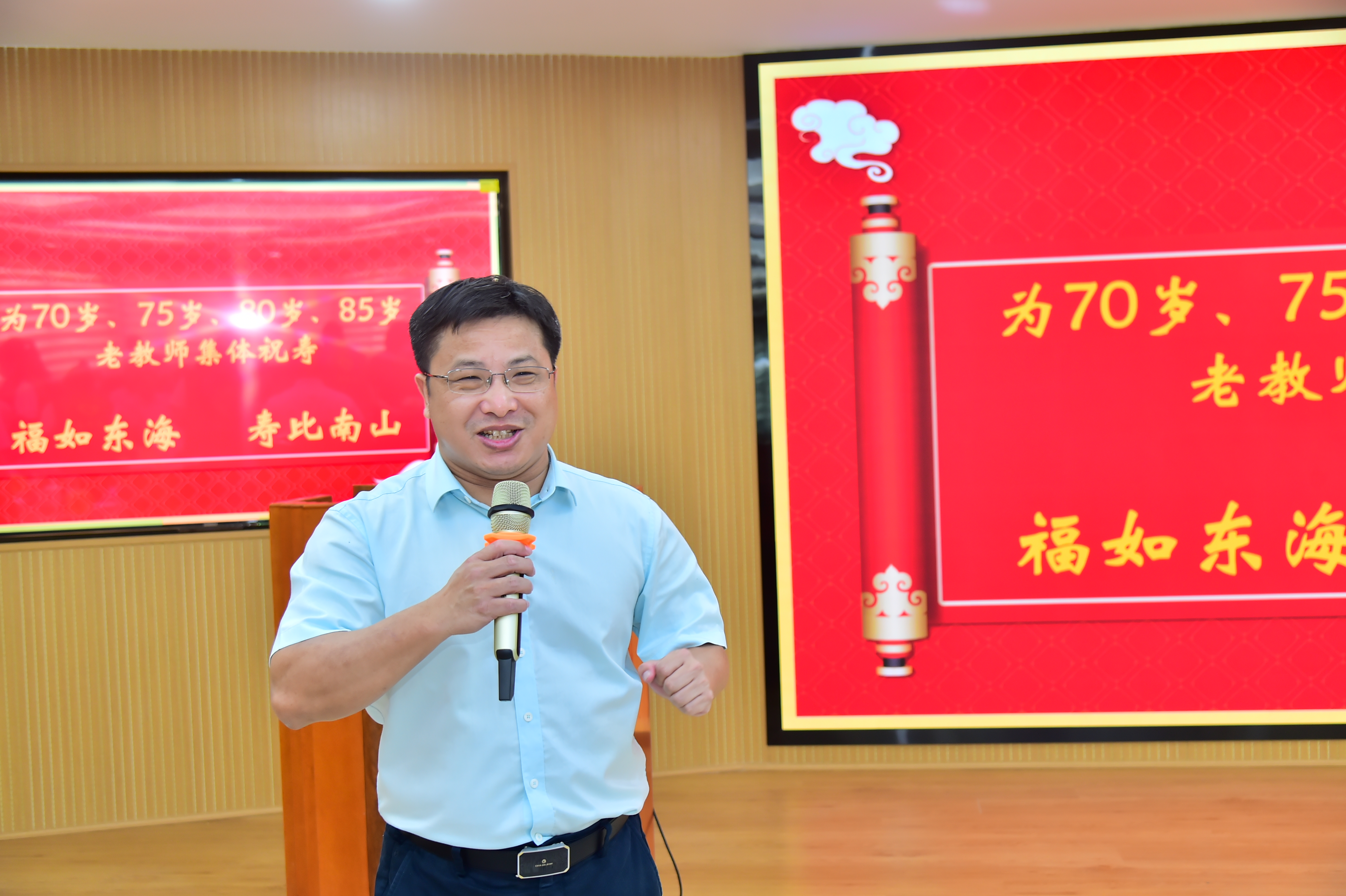 曾忠毅主任为老教师们献上祝福,祝愿老教师们健康快乐、幸福平安。同时,施卫华书记为70岁、75岁、80岁、85岁老教师集体祝寿,代表学院为他们献上一份心意。