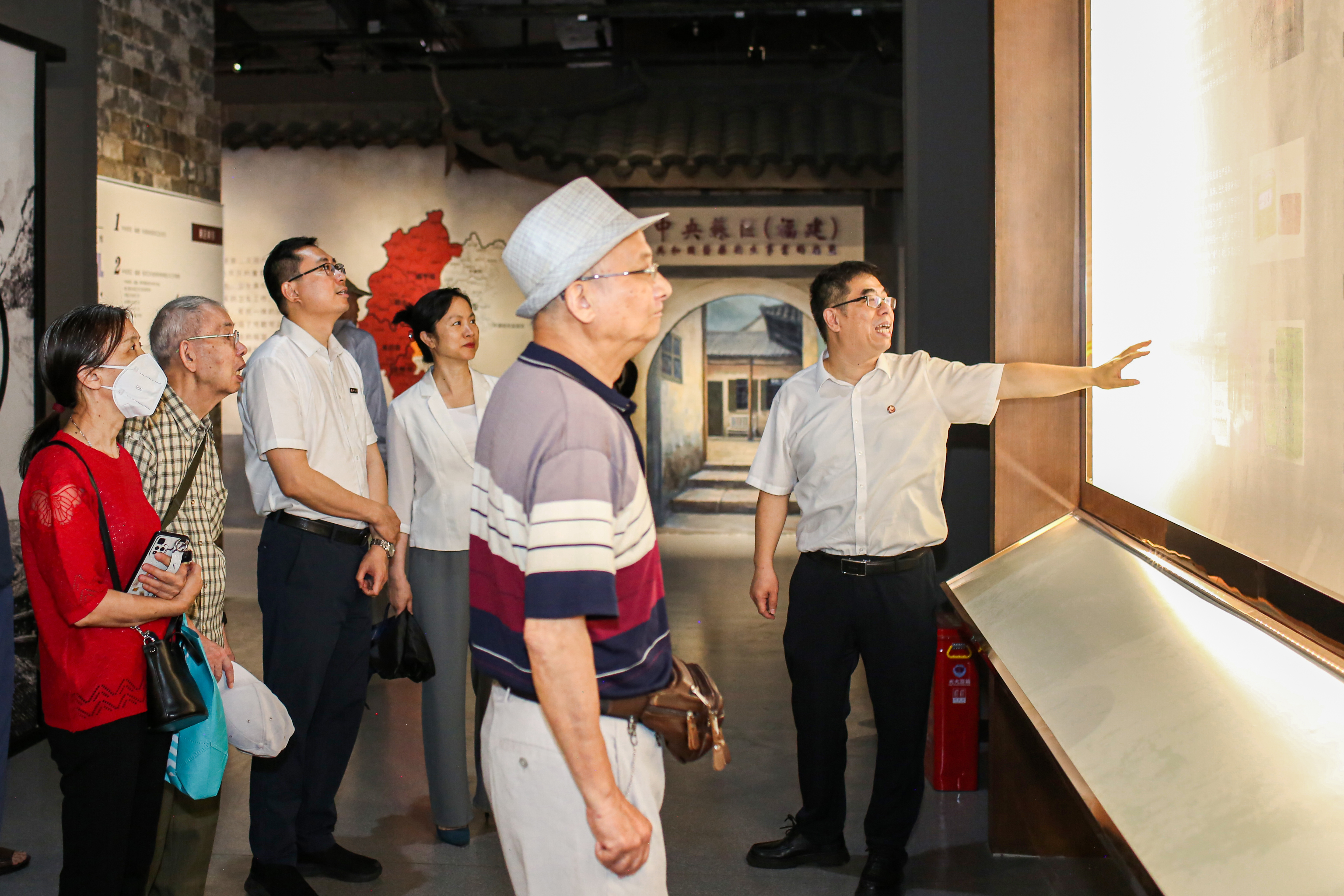 福建中医药大学药学院党委书记翁锋为老教师做讲解