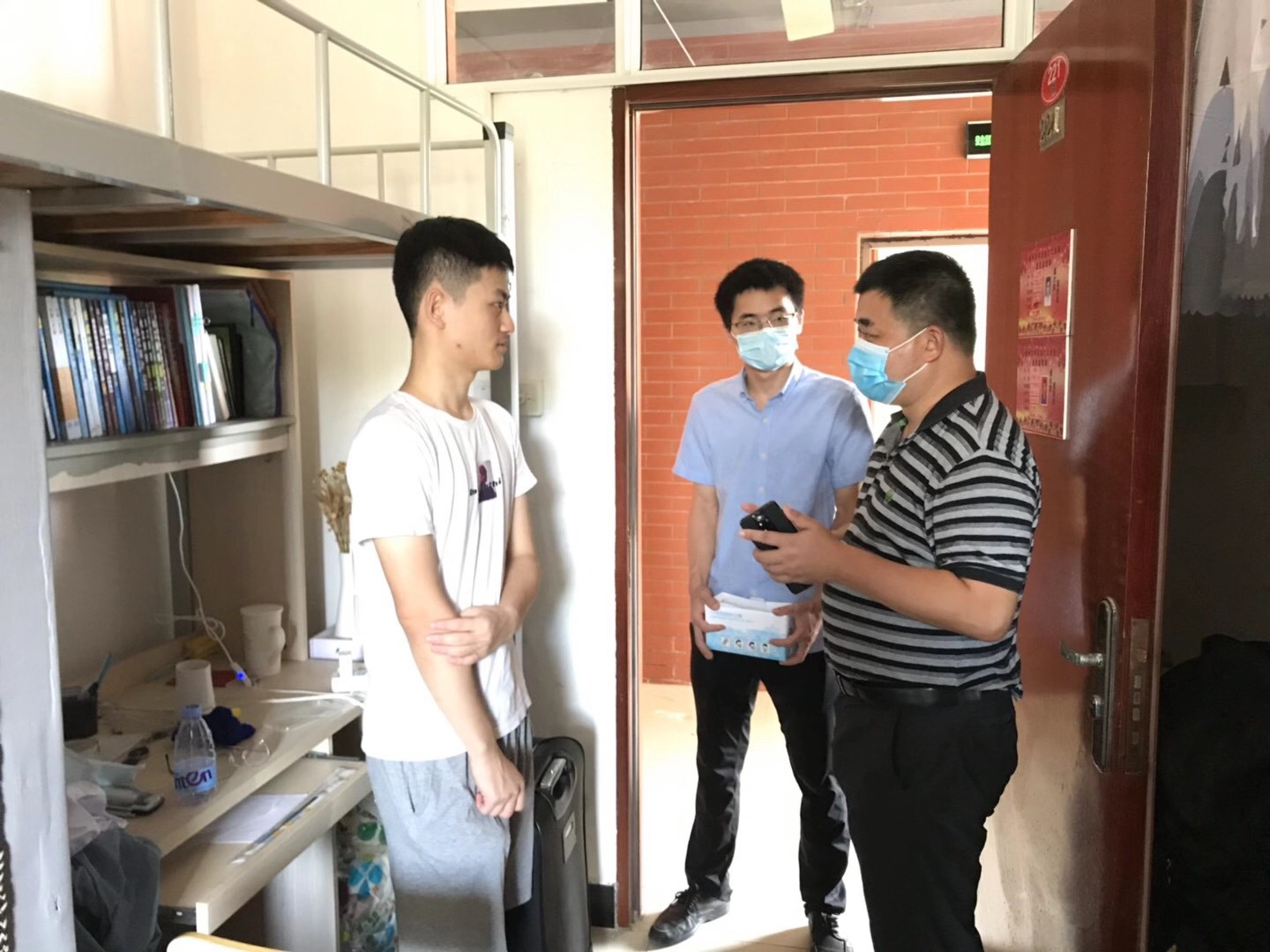 为保证学生返校后的学习生活有序开展,石化学院于近日采取了一系列有效服务举措。8月24日起,物业人员提前前往学生宿舍进行初步打扫,并将宿舍通风透气;8月26日,相关人员对学生宿舍的水电情况进行检查,确保学生返校后水电能够正常使用。返校当天,使用学院自制消毒液对学生宿舍床板以及行李箱进行全面消毒,并组织返校学生第一时间打扫宿舍,保证宿舍清洁卫生。学院领导在学院大门口,与前来送学的学生家长亲切交谈,在返校学生宿舍内,与同学们进行了深入沟通交流,亲切询问了同学们假期学习生活情况,对同学们在疫情期间克服困难,坚持学习的精神表示赞赏,并嘱咐学生们要珍惜时光,把因疫情影响流逝的时间夺回来,在有限的校园学习时光,取得最大的成绩。在走访宿舍的过程中,学院领导向同学们发放了防疫口罩,叮嘱同学们不要因为疫情防控形势好转而放松警惕,在合理安排学习生活的同时,仍需积极主动配合学院做好相关疫情防控工作。