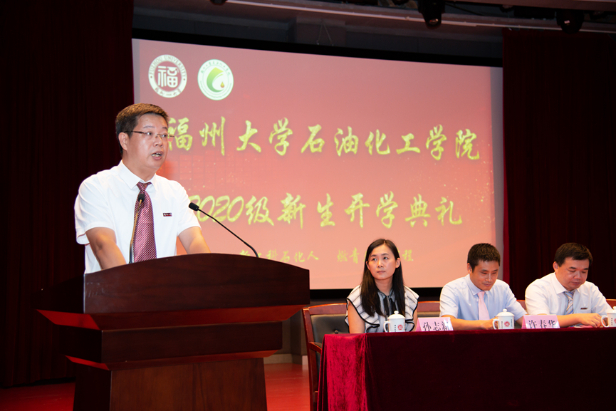 2020级新生开学典礼在旗山校区图书馆博学厅顺利举行。学院党委书记施卫华副研究员、院长江莉龙研究员、常务副院长侯琳熙教授、化肥催化剂国家工程研究中心副主任许春华副研究员、院长助理李玲教授、院长助理孙志新副教授、新生班主任代表以及学院学工办全体辅导员等出席本次典礼。开学典礼由学院党委副书记岳志强副教授主持,学院272名本科新生和256名研究生新生到场参加。