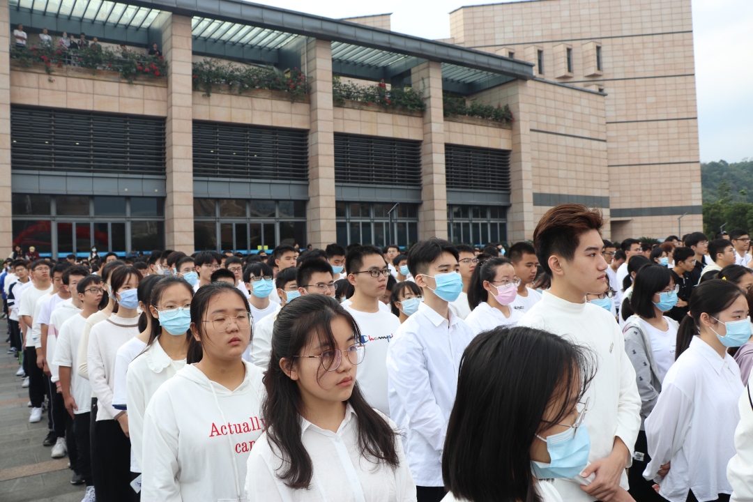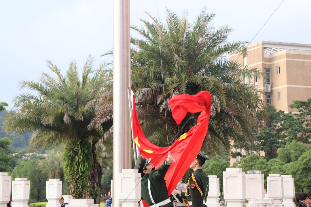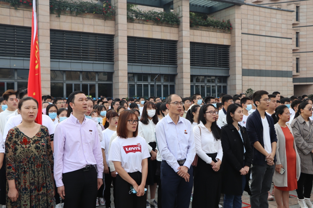 在泉港校区与旗山校区同步举行升旗仪式。全体学工组老师及2020级新生参加了此次升旗仪式。