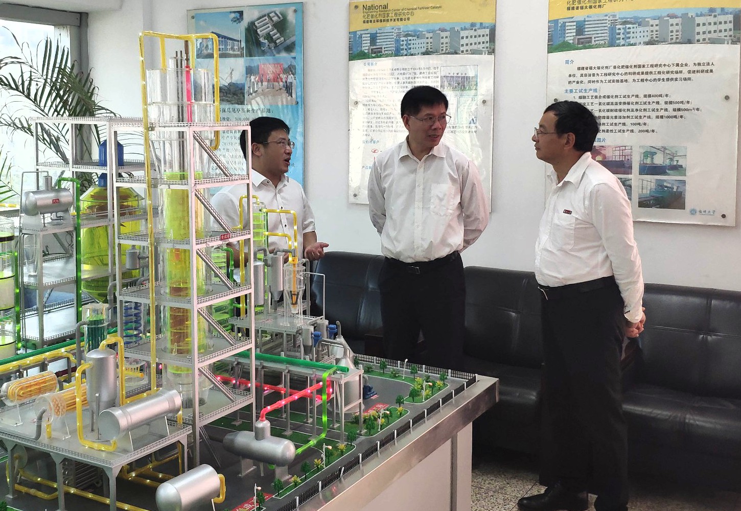 党委书记张天明、副校长黄志刚来到化肥催化剂国家工程研究中心调研。党办校办等部门负责人陪同调研。