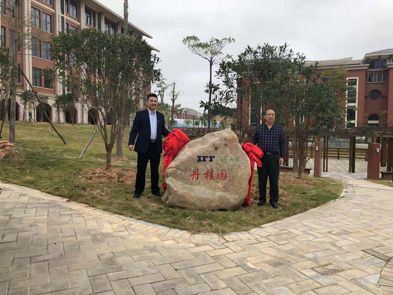 在一列师生的掌声中,张忠富先生与叶志清书记为“永芳丹桂园”开园揭幕。