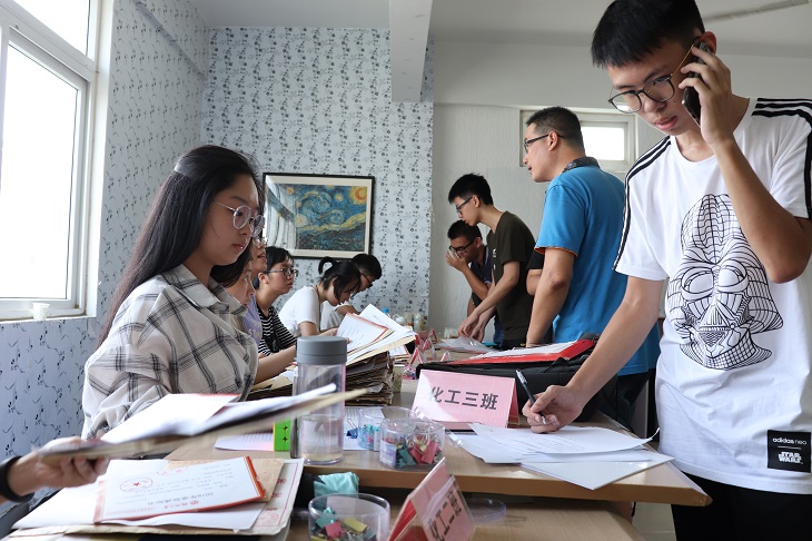 盼望着,盼望着,“你”来了,带着美好的憧憬和期待,新的一批青春石化人的生活即将拉开帷幕。热心的志愿者们接过新生和家长手中的行李,将他们引导到迎新点办理手续;班导们和迎新点的工作人员用自己的笑脸为新生和家长们化解紧张,耐心的为他们答疑解惑,将崭新的大学生活描绘在他们的眼前。为了确保“不让任何一个学生单纯因家庭困难而失学”的目标,学院设立了“绿色通道谈话室”,让需要帮助的新生们能够通过此通道正常入学。