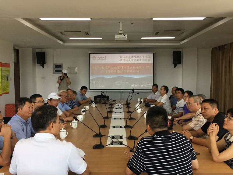 厦门校友会化学化工分会一行莅临泉港校区参观访问,学院党委书记叶志清、副书记岳志强、副院长侯琳熙、副院长陈全成陪同参观。