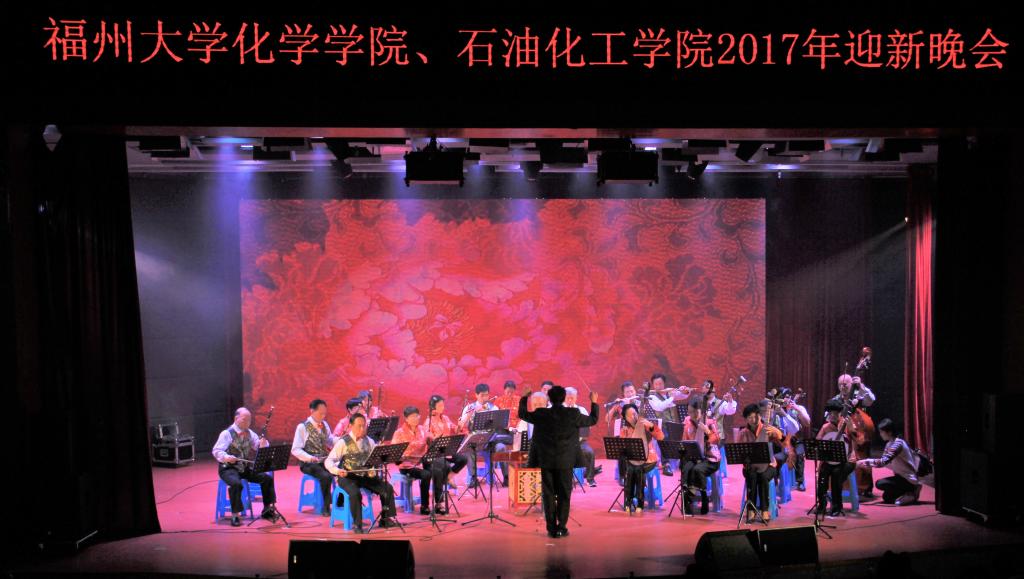 晚会在两院器乐队带来的器乐表演中拉开序幕,暖色灯光下演奏者们沉浸在音乐的世界,一支狂想曲,为我们带来晚会浓郁的氛围。稍后,主持人闪亮登场宣布晚会正式开始并介绍嘉宾。节目一一纷呈,过控二班的两位活力小伙一首说唱充分燃烧现场的激情;化学一班稍后带来的《对影成青春》以幕布人影戏的形式向我们呈现了一种另类表演;紧接着,王良恩教授率领“福大希阳乐团”为我们带来了民乐表演,让现场同学们重分品味中华瑰宝之美;送别王教授后,石化学院艺术团以歌伴舞的形式为我们带来了《凉凉》,让全场为之喝彩;下面由两院合作的朗诵吟诵了我们的先辈卢嘉锡,在场新生们无一不收到鼓励;为放飞同一个美好的梦想,化工一班用合唱和表演《白桦林》的形式放飞他们白色的和平之梦;由两院模特队带来的模特秀再次带起全场的高潮;双口相声又让人忍俊不禁;小品《大学新生三两事》更是用诙谐幽默的格调指出了新生的一些不妥之处,希望新生们有所感触并认识到错误;稍后,青春四溢的班导们用歌声、用舞蹈、用话语表达了对新生们的感谢与祝福;之后由两院歌手队的音乐剧《怦然心动》让在座的同学们有些猝不及防,同时也为爱情的甜蜜而欢呼;最后的节目由两院艺术团带来,用演唱和手语的方式表演了《时间煮雨》。最后,由主持人宣布此次晚会完美落幕。