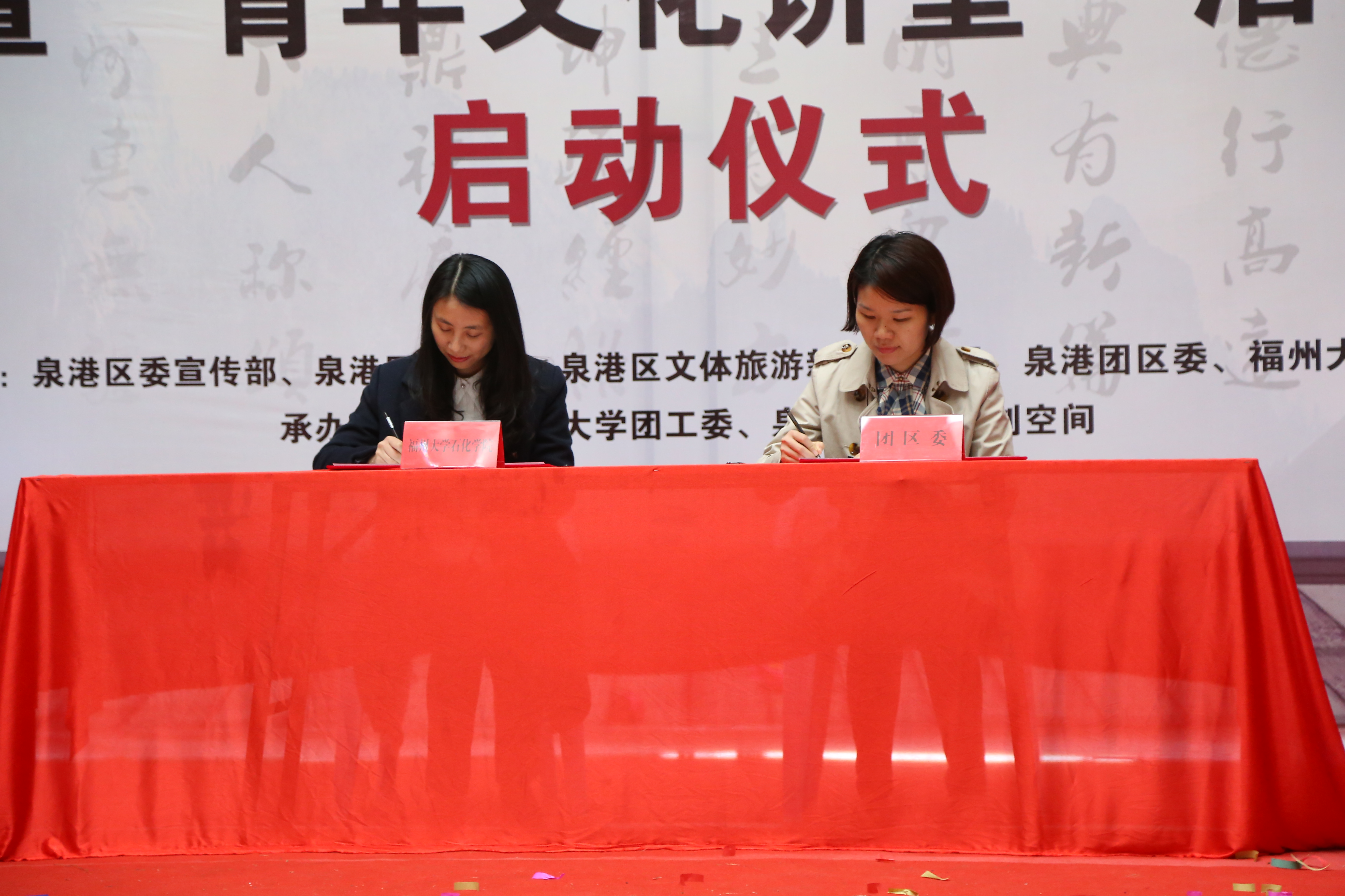 石化学院(泉港校区)正式启动。院党委叶志清书记、副院长侯琳熙教授、院团委书记蒋林娟、院团委副书记伍宇翔、泉港区委宣传部副部长傅国强、区文体新局局长陈玉顺、团区委书记连励、区教育副局长陈荣华出席了本次启动仪式。