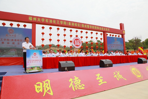 第一届理事会名单,校领导陈永正、付贤智、邹毅先后为理事会常务理事颁发聘书。随后,校地企三方嘉宾共同为石化学院泉港校区揭牌,并为樱花动漫