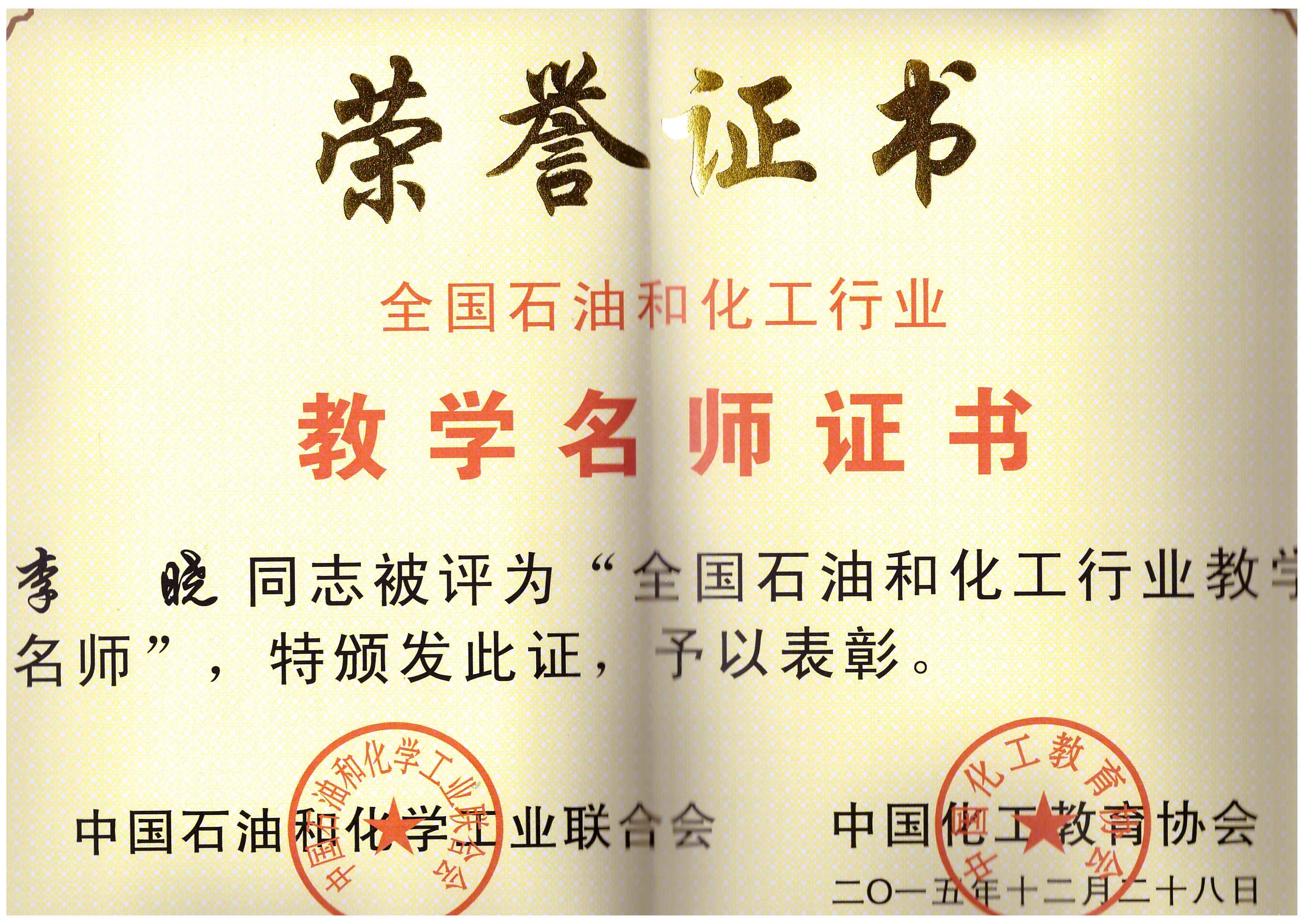 喜讯:热烈祝贺樱花动漫 李晓教授荣获“全国石油和化工行业教学名师”