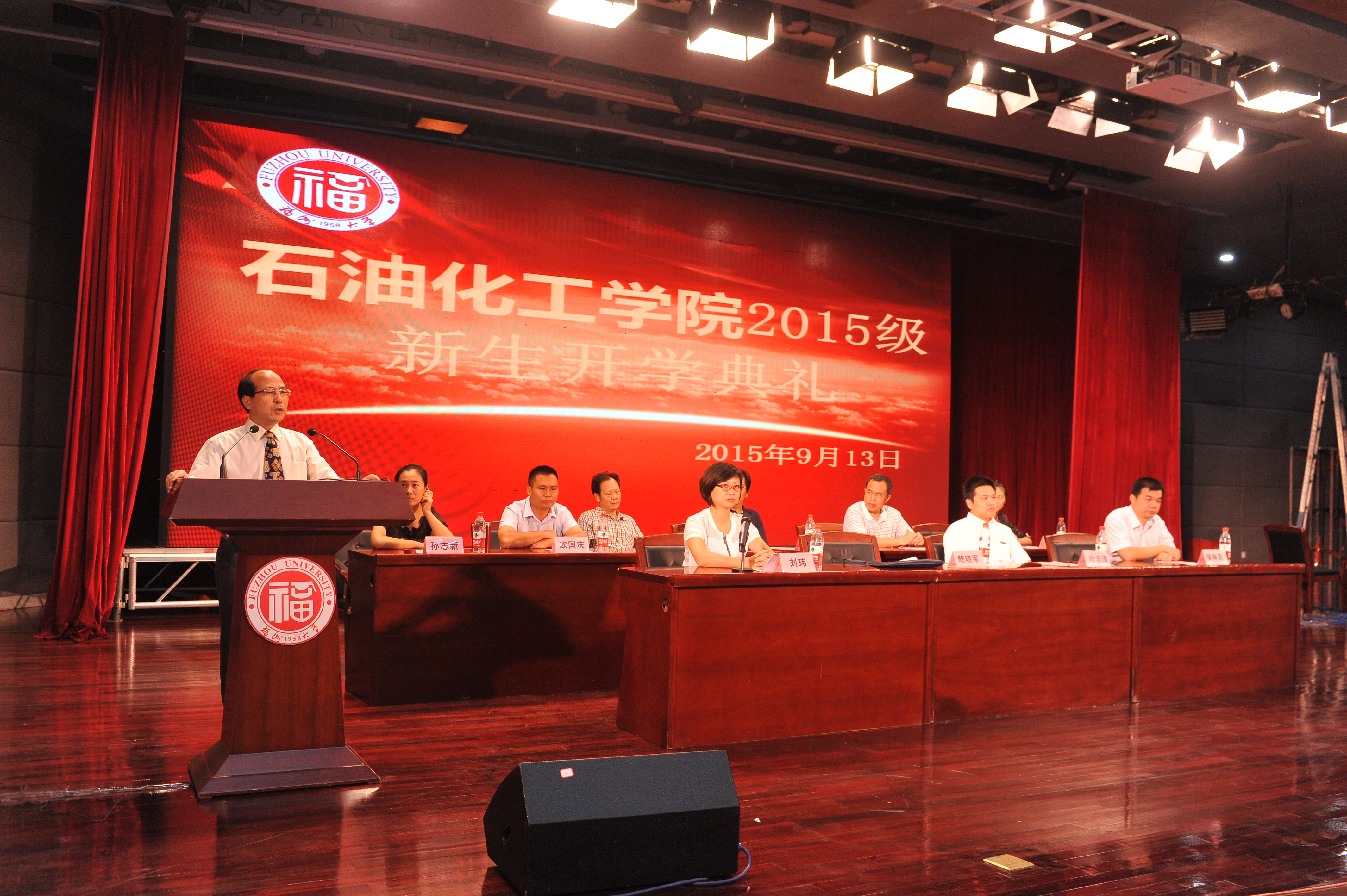 首先,学院孙志新老师代表全院所有老师欢迎2015级新生加入我们的石化大家庭。孙老师用轻松、诙谐的语言和我们分享了大学最后悔的5件事,希望新生好好利用学校的学习资源,参加一些活动,提升学习之外的能力,趁年轻,及早规划自己的人生。紧接着是2013级本科生代表蔡世逸和2015级新生代表郑萱同学先后上台发言。他们分别分享了在校生活的感受,和对美好的大学新生活的憧憬。