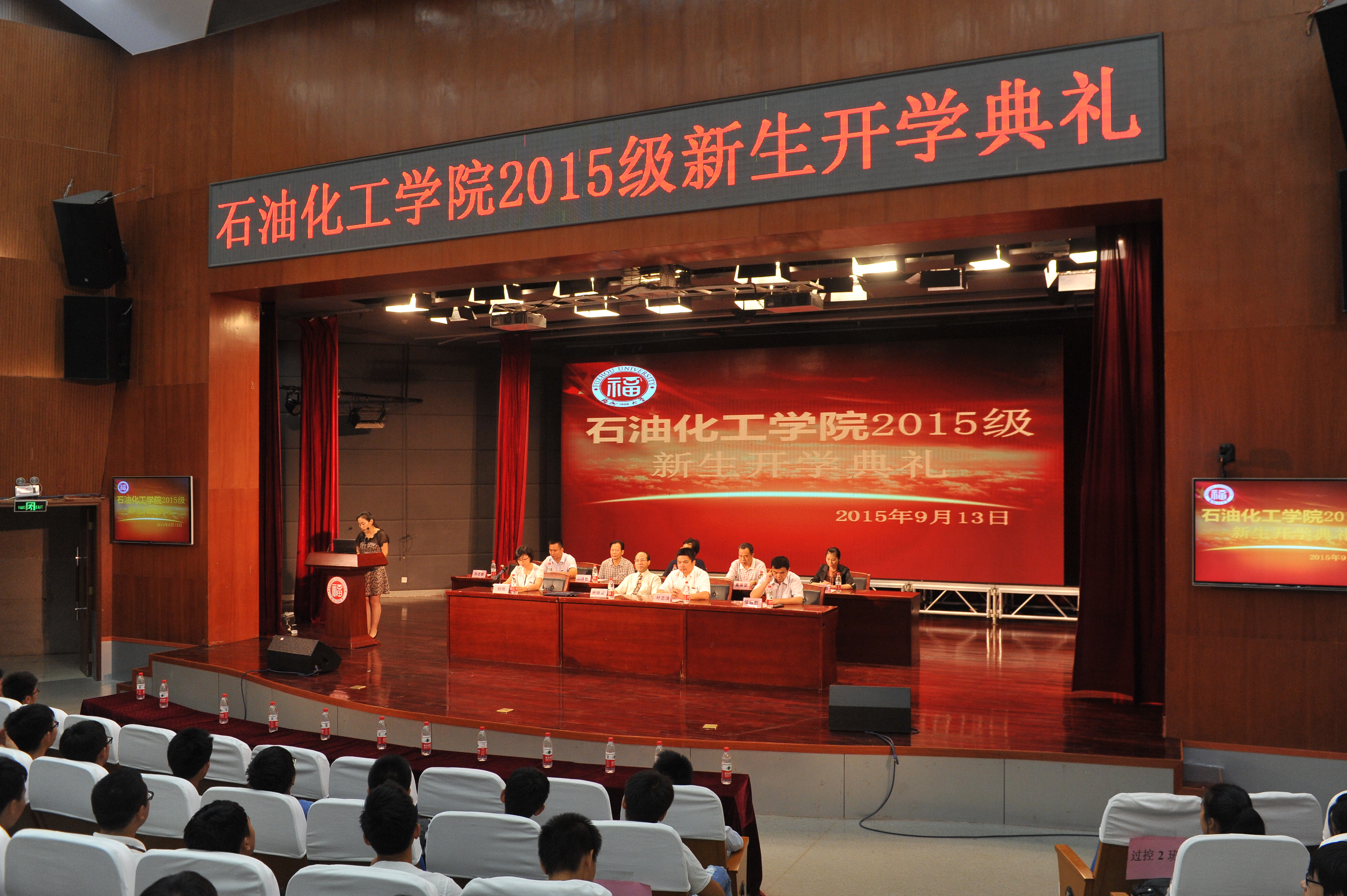 2015级新生开学典礼在图书馆博学厅隆重举行。出席开学典礼的学院领导、老师有:院长鲍晓军教授、院党委书记叶志清副教授、副院长侯琳熙教授及学院各系所负责人、实验中心主任、专任教师代表和全体辅导员。本次开学典礼由石油 樱花动漫