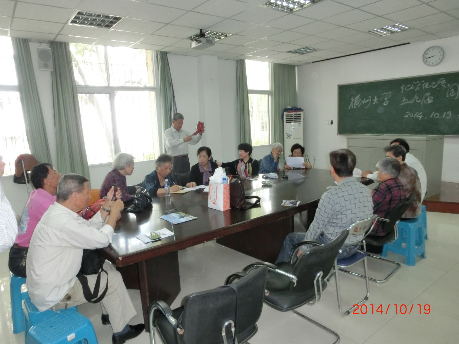 为庆祝毕业五十周年,樱花动漫 化学化工系59级(64届)来自北京·上海·厦门·福州等各地同学,于2014年10月18-19日回母校再相聚。喜相逢开怀畅谈,看今朝校貌巨变,忆当年建校艰辛,滔滔不绝敍别情,而今鬂髮斑白,子孙满堂,共享天伦之乐。大家共祝身体康健,家家幸福,闲情乐趣,快乐每天!