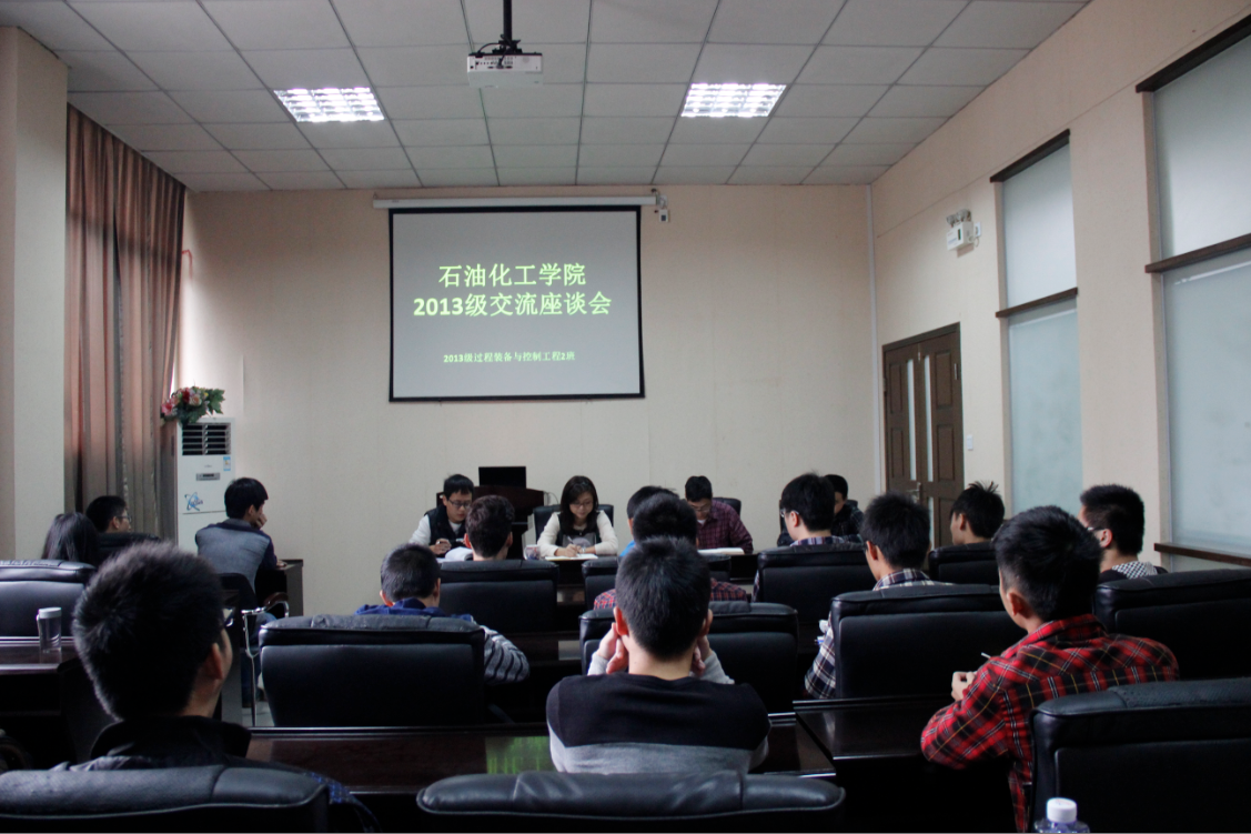 在院办205会议室召开2013级交流座谈会。学院党委副书记刘玮老师,副院长江义平老师,院长助理侯琳熙老师,2013级本科生辅导员翁森老师,以及2013级过程装备与控制工程2班全体同学参加了此次座谈会。