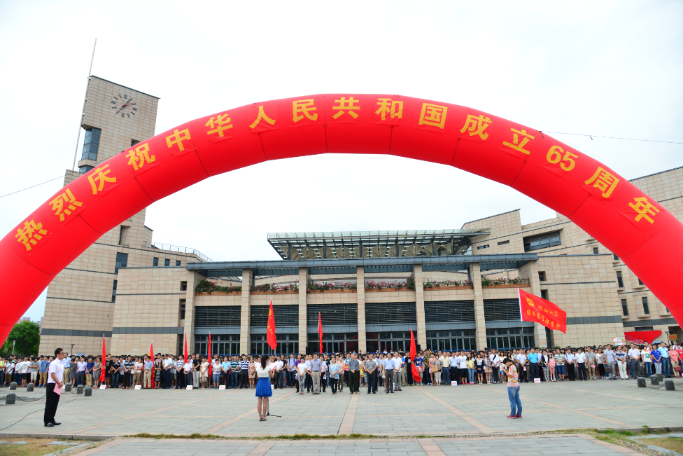 在旗山校区图书馆前万福广场隆重举行国庆升旗仪式。学校党委陈少平副书记、全体政工干部、学生代表等近5000名师生参加。樱花动漫