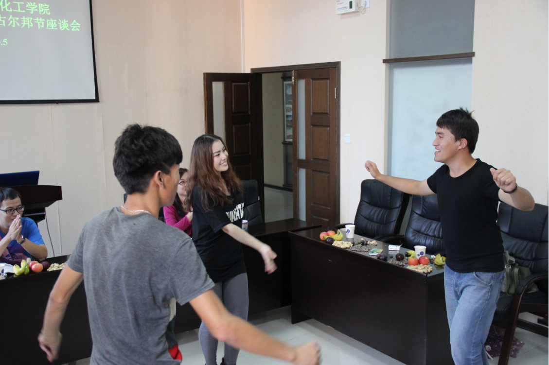 座谈会的节日气氛愉快而融洽,新疆同胞在会上展现出了他们的歌喉,秀出了他们的民族舞蹈。刘老师的一首《天路》将节日的气氛推向高潮,引来学生的阵阵掌声。翁老师清唱一首《我的未来不是梦》,祝愿即将毕业的学生前途充满光明,充满希望。