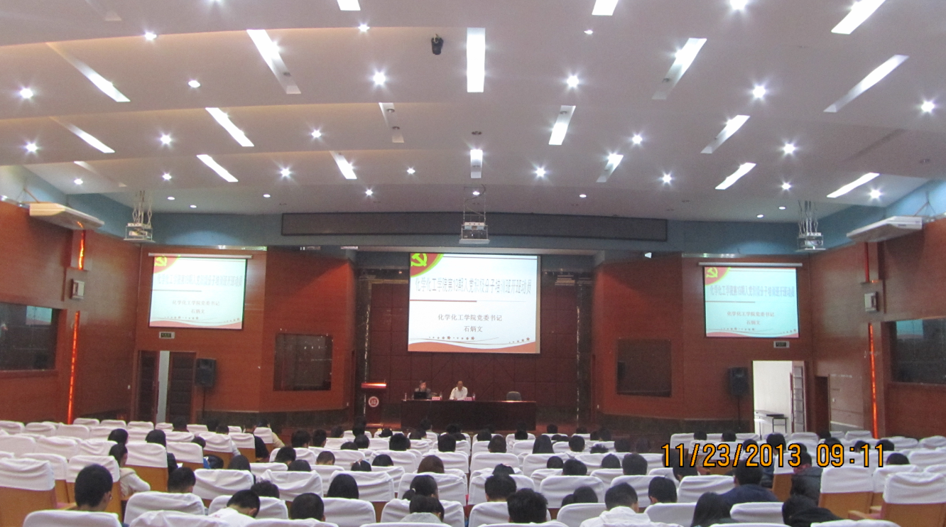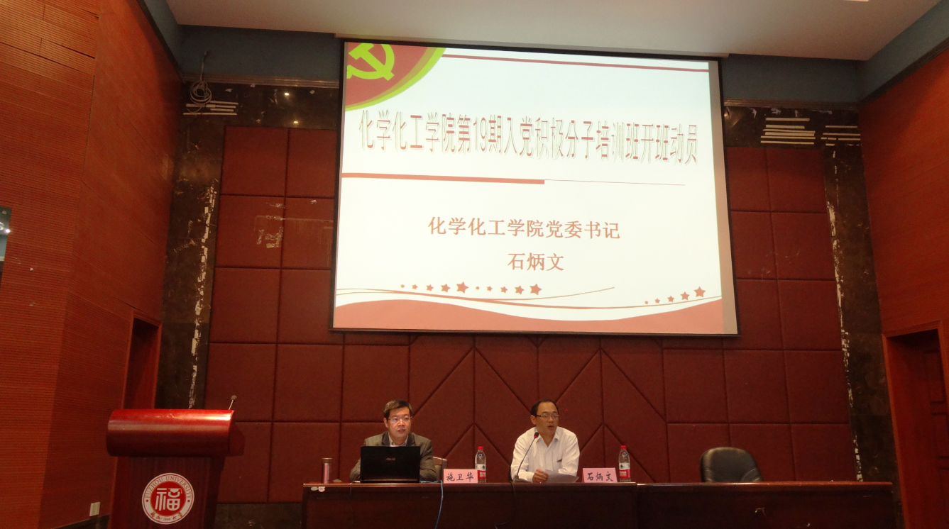 分党校第十九期入党积极分子培训班在嘉锡楼报告厅开班。出席本次开班仪式的有院党委石炳文书记,党委施卫华副书记,10级辅导员朱振宁,11级辅导员华琴,及学院入党积极分子90余人。