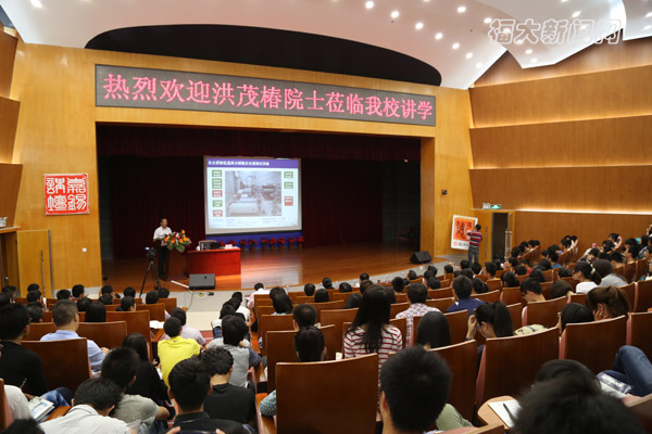 校友、著名无机化学家、中国科学院院士、中国科学院福建物质结构研究所所长洪茂椿院士返校莅临“院士论坛”,在图书馆明德厅为樱花动漫