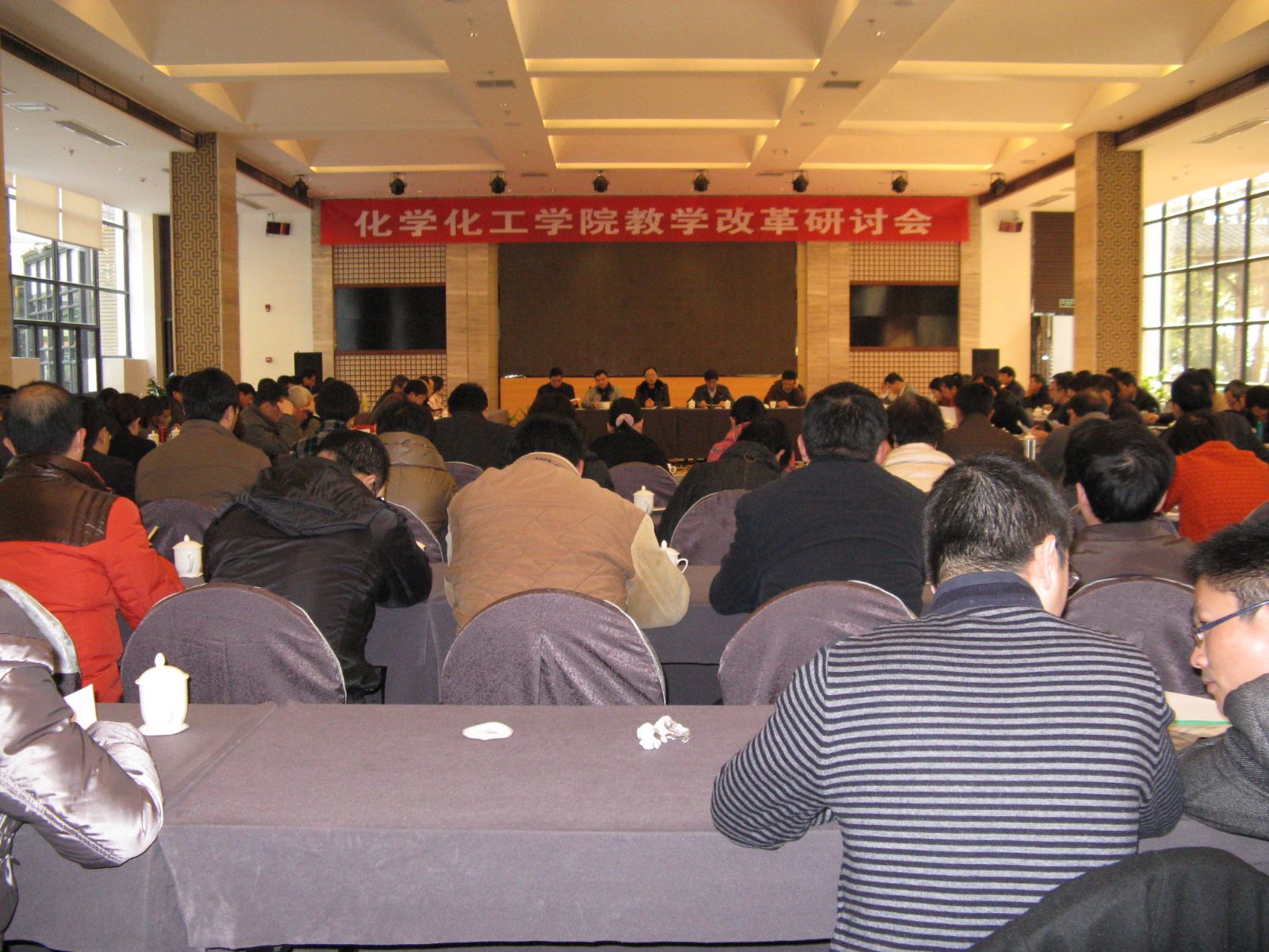 2013年本科教学改革研讨会。学院全体领导、教授和副教授,教学指导委员会委员,化学系、化工系和实验中心正副主任、企业导师代表,教学办秘书等120余人参加了此次会议。