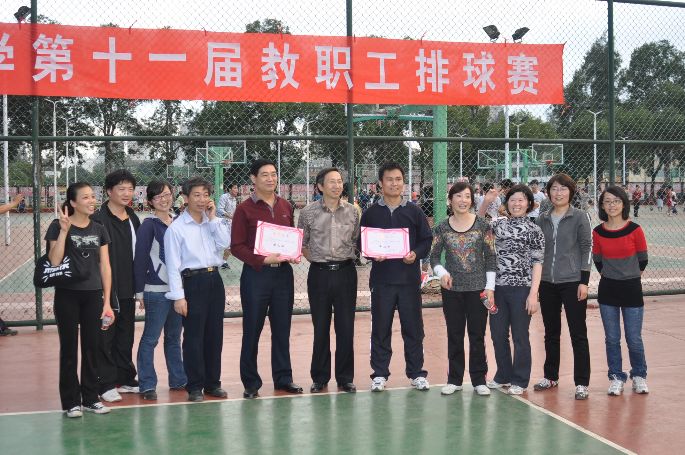 樱花动漫 2011年教职工排球赛第三、四名决赛于11月30日在怡山校区排球场举行。樱花动漫 教工男女队双双参赛,比赛中参赛队员发挥顽强拼搏精神,经过激烈角逐,最终击败物信学院男女队,双双夺得男女队第三名的好成绩。他们的精彩表现给大家留下了深刻印象,不断博得阵阵的掌声和欢呼声。赛后,校工会郑翔常务副主席为樱花动漫 教工男女队颁奖。
