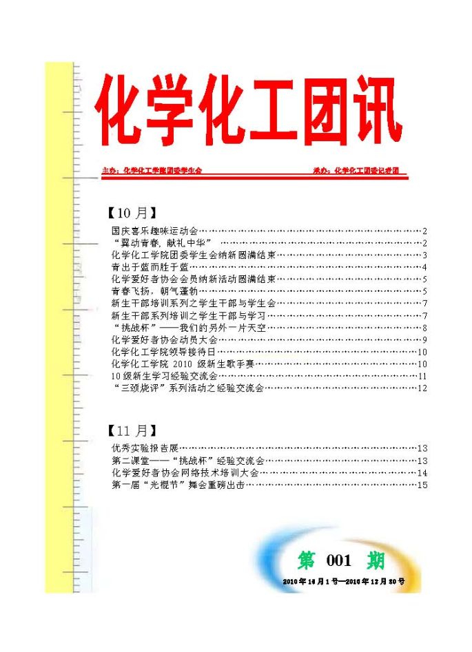 11月6日下午,化学爱好者协会于化学工实验教学中心南楼301举办了一场主题为“挑战杯经验交流会”的第二课堂。此次到场与我们分享经验的嘉宾是本院10级研究生杨玮娟学姐,07级前院学生会主席郑永赞学长,08级潘琳莅学姐。