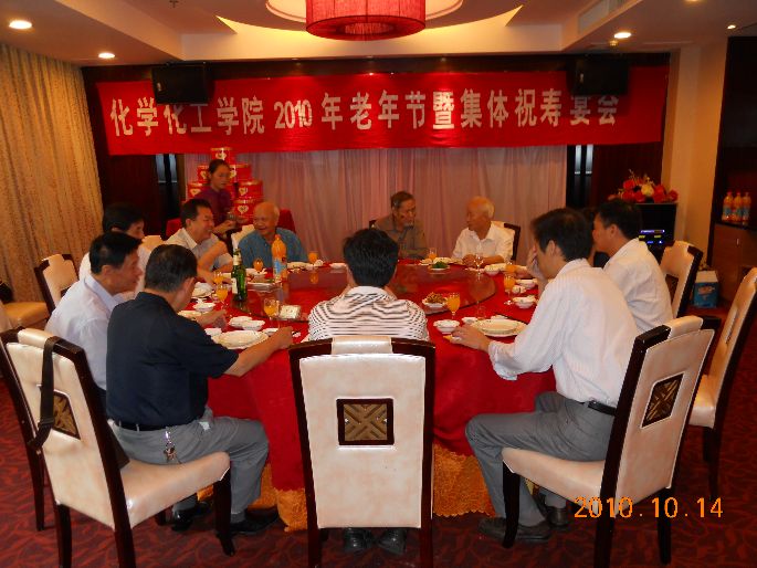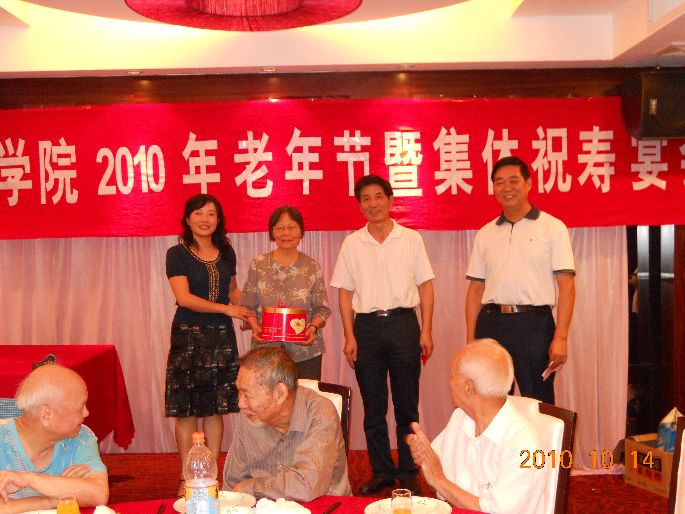 庆祝2010年老年节暨集体祝寿宴会在嘉宾大酒楼隆重举行,学院党政工领导及近90名老教师参加了宴会。宴会由学院副院长、工会主席林树坤老师主持。会上,王绪绪院长致辞,他对老教师们对学院作出的贡献和一直以来对学院发展的关心和支持表示衷心的感谢,并给予老教师们最诚挚的祝福。王绪绪院长还向老教师们汇报了学院一年来的工作。接着,倪朝霞书记、王绪绪院长分别向70周岁、75周岁、80周岁、85周岁的老教师们祝寿。