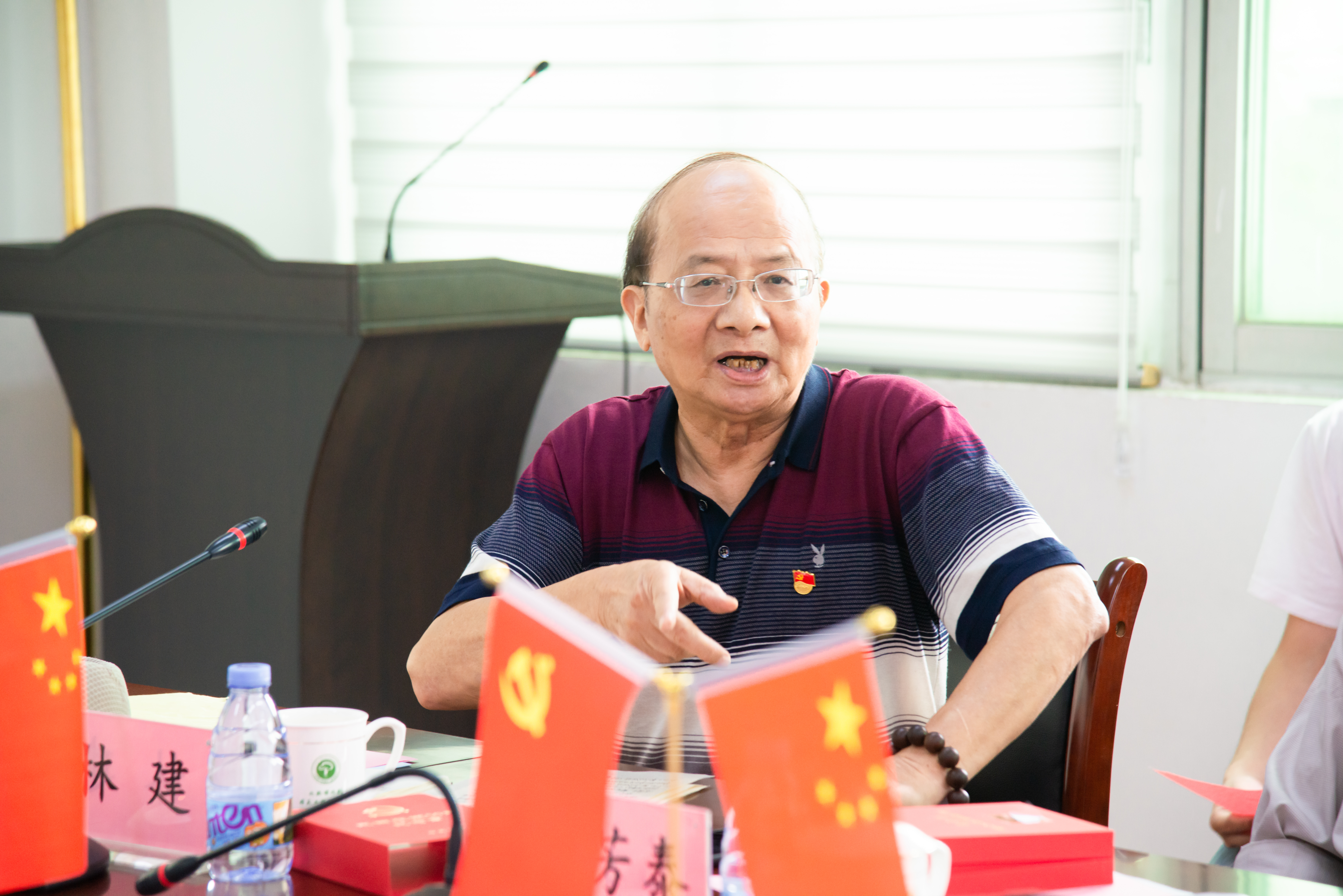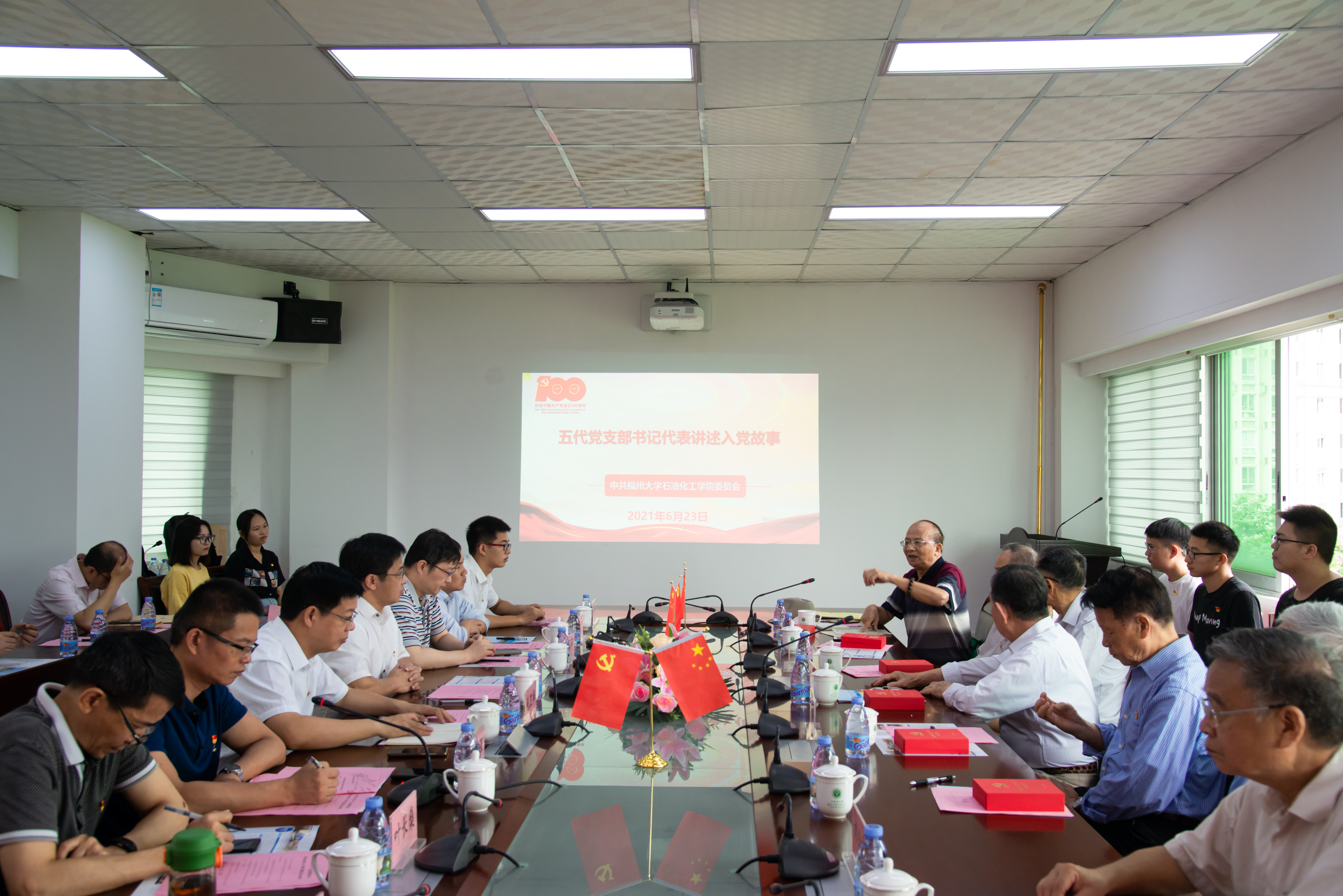 党委在怡山校区工催中心会议室邀请五位不同年代的党支部书记分享自己的入党故事。出席本次分享会的有院党委施卫华书记,院长江莉龙研究员,院党委岳志强副书记以及师生党员代表。