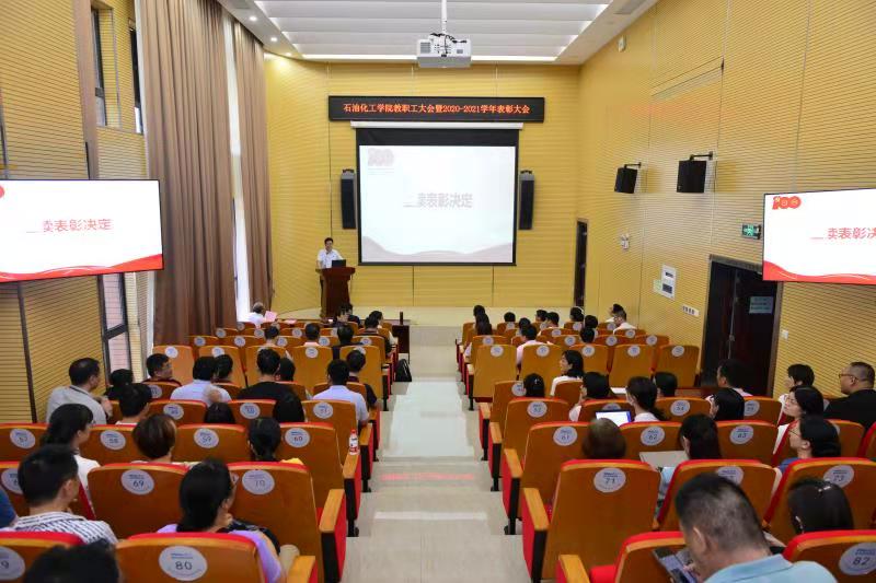 在旗山校区泉港楼优尔报告厅召开教职工大会暨表彰大会,布置学期末和暑期工作,表彰2020-2021学年先进集体和个人。