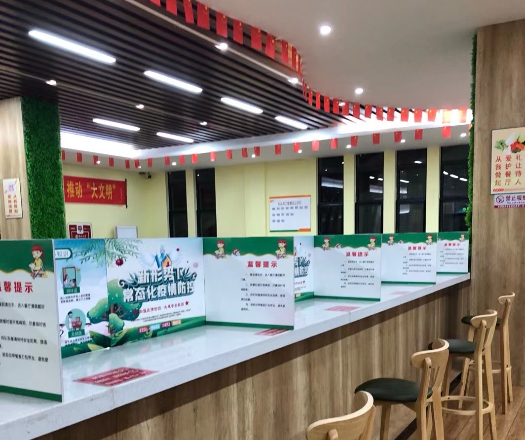 食堂就餐上,严格按照“一人一桌、同向而坐”的就餐要求,构建安全卫生健康的用餐环境。