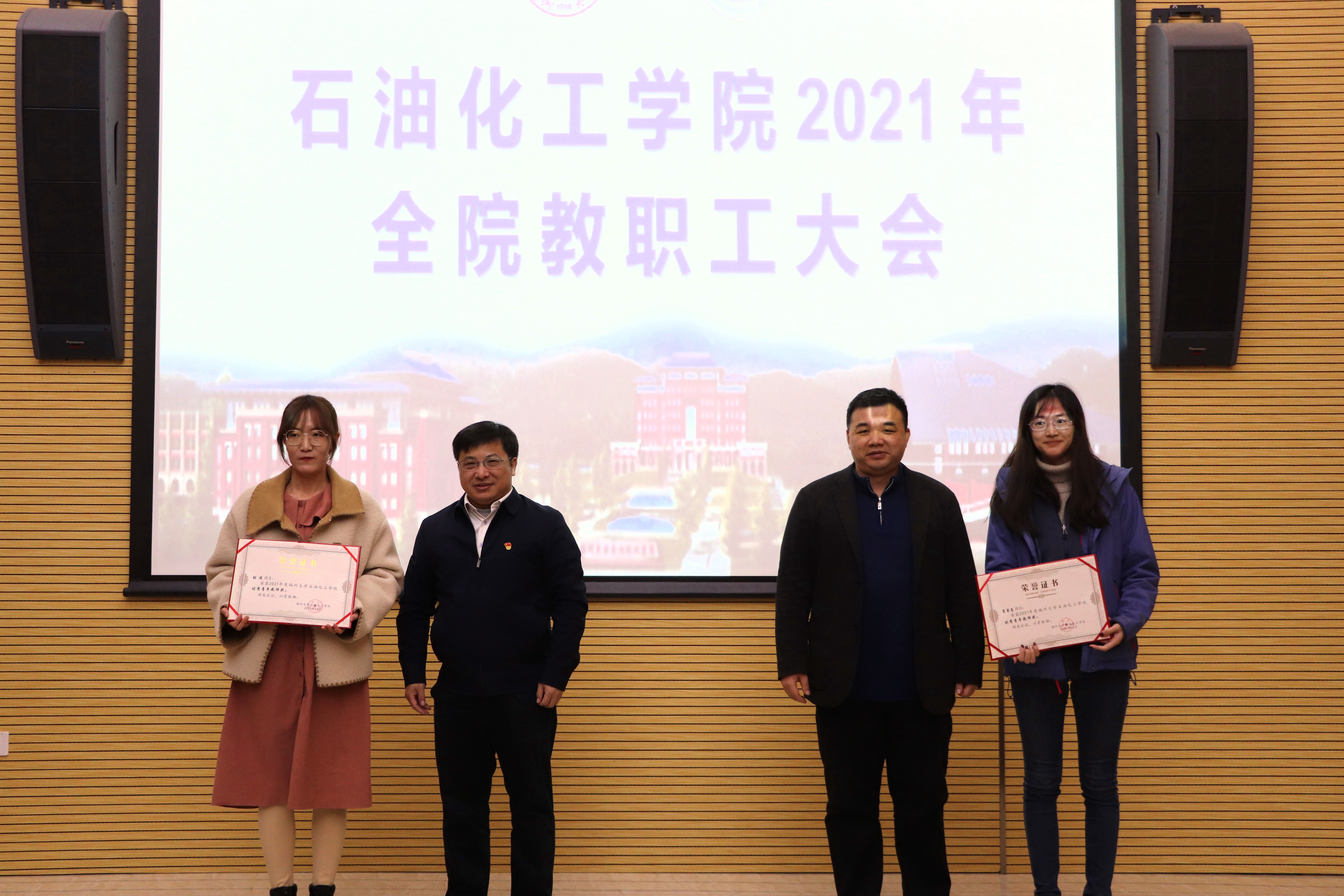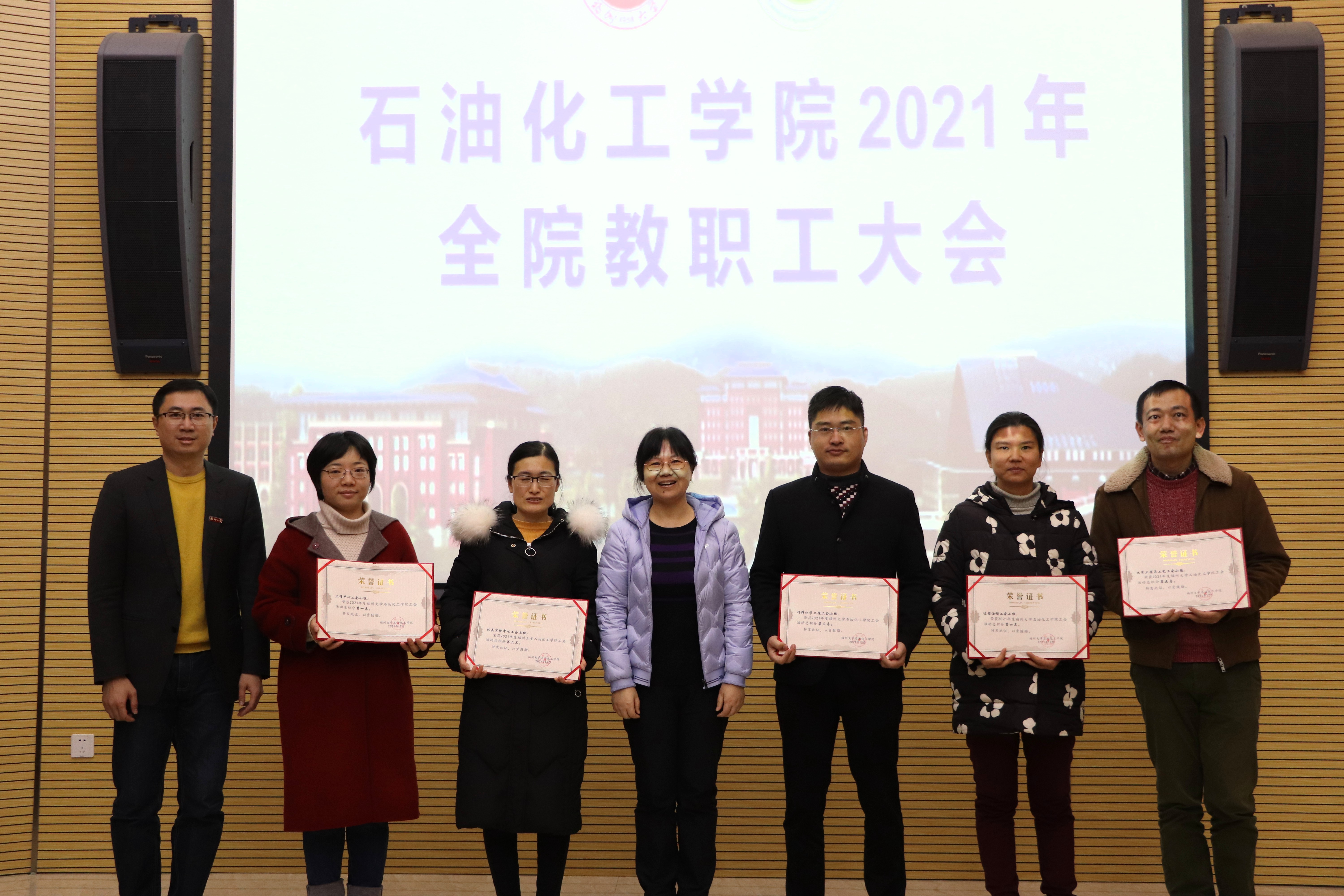 会间,大会进行2021年学院表现突出团队及人员表彰。施卫华书记宣读表彰决定,学院领导分别给优秀教学团队、优秀青年教师、优秀工会小组、工会积极分子等获奖团队与个人进行颁奖。