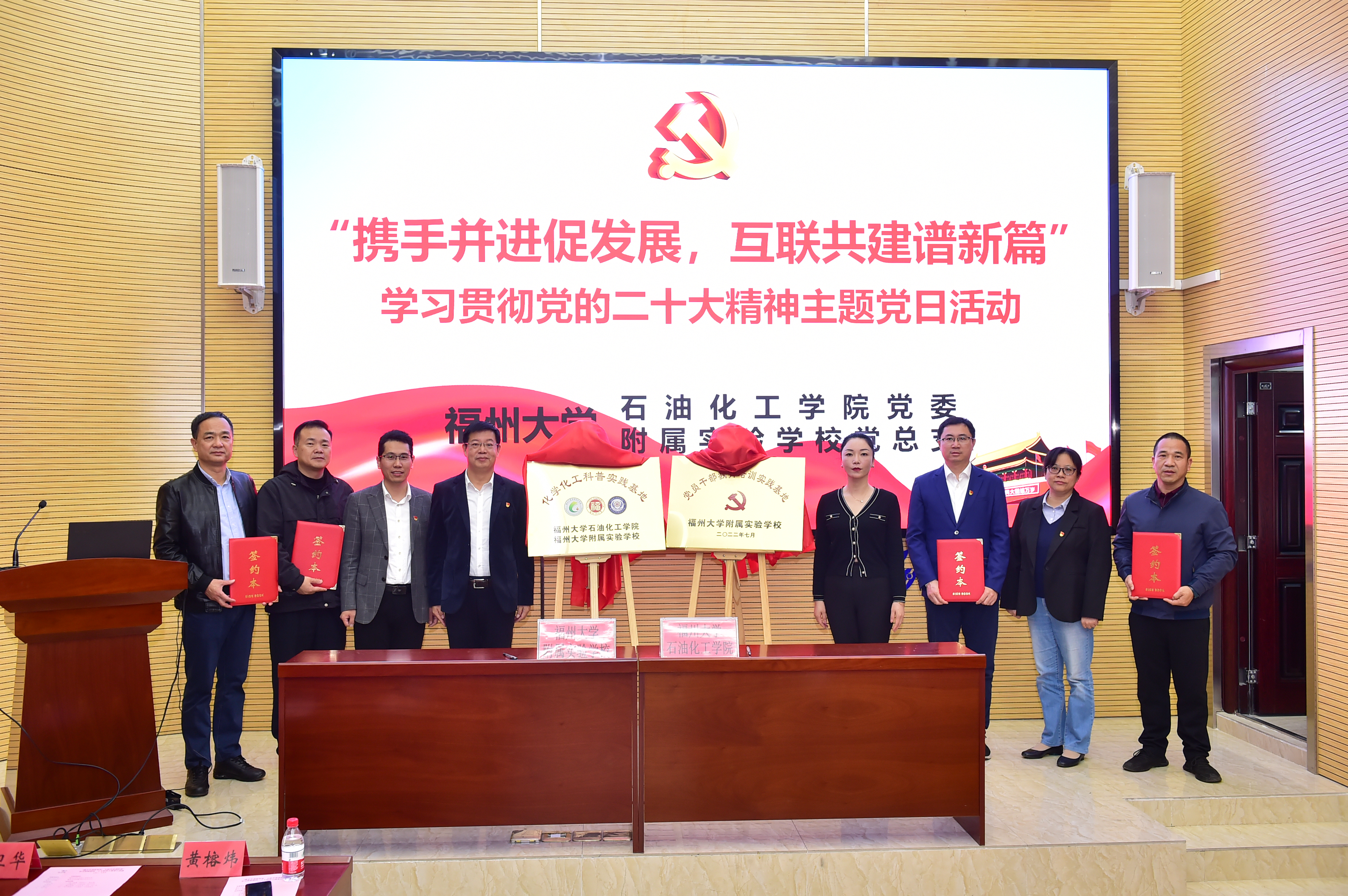 微党课后,学院和附属学校举行了简单而又隆重的签约仪式,由双方代表签署了党组织结对共建协议书和共建化学化工科普实践基地协议书,并共同为樱花动漫