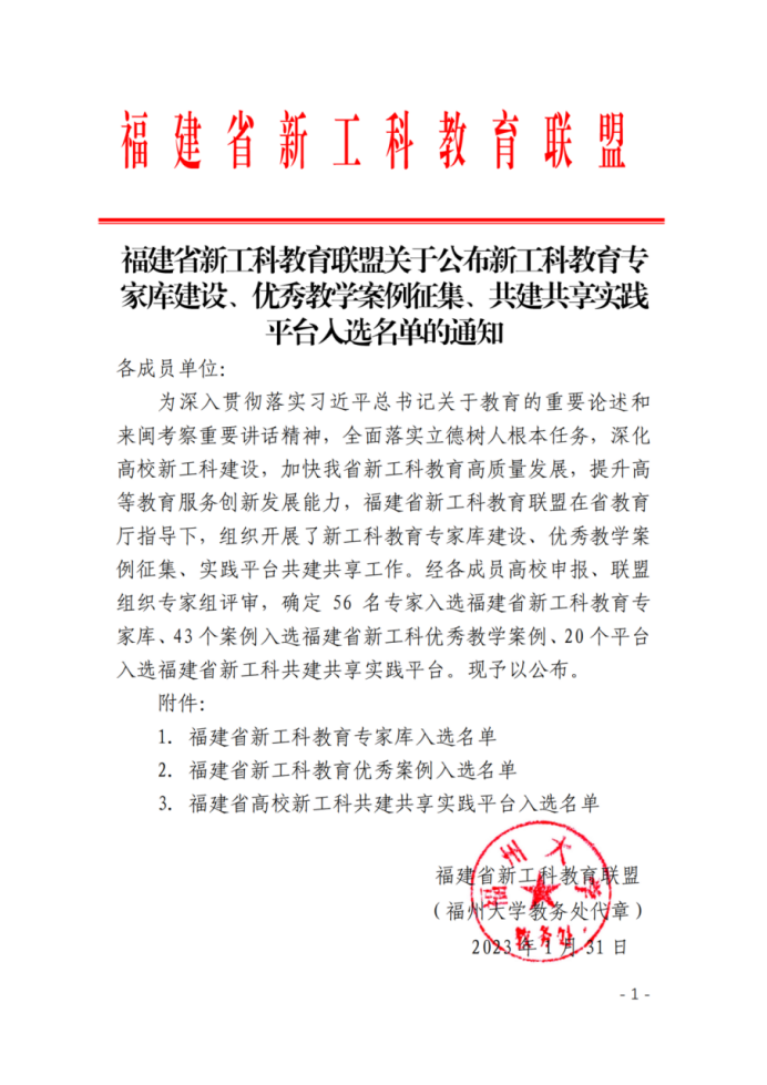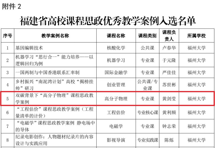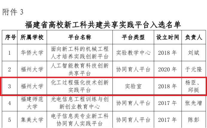 近日,福建省新工科教育联盟和福建省高校课程思政教育联盟先后公布了福建省新工科教育专家、新工科教育优秀案例、共建共享实践平台和福建省课程思政专家库、课程思政优秀教学案例入选名单的通知,樱花动漫 邱挺教授和杨臣教授负责的“化工过程强化技术创新实践平台”入选福建省高校新工科共建共享实践平台,黄剑莹教授的“双碳背景下‘高分子物理’课程思政教学案例”入选福建省高校课程思政优秀教学案例。