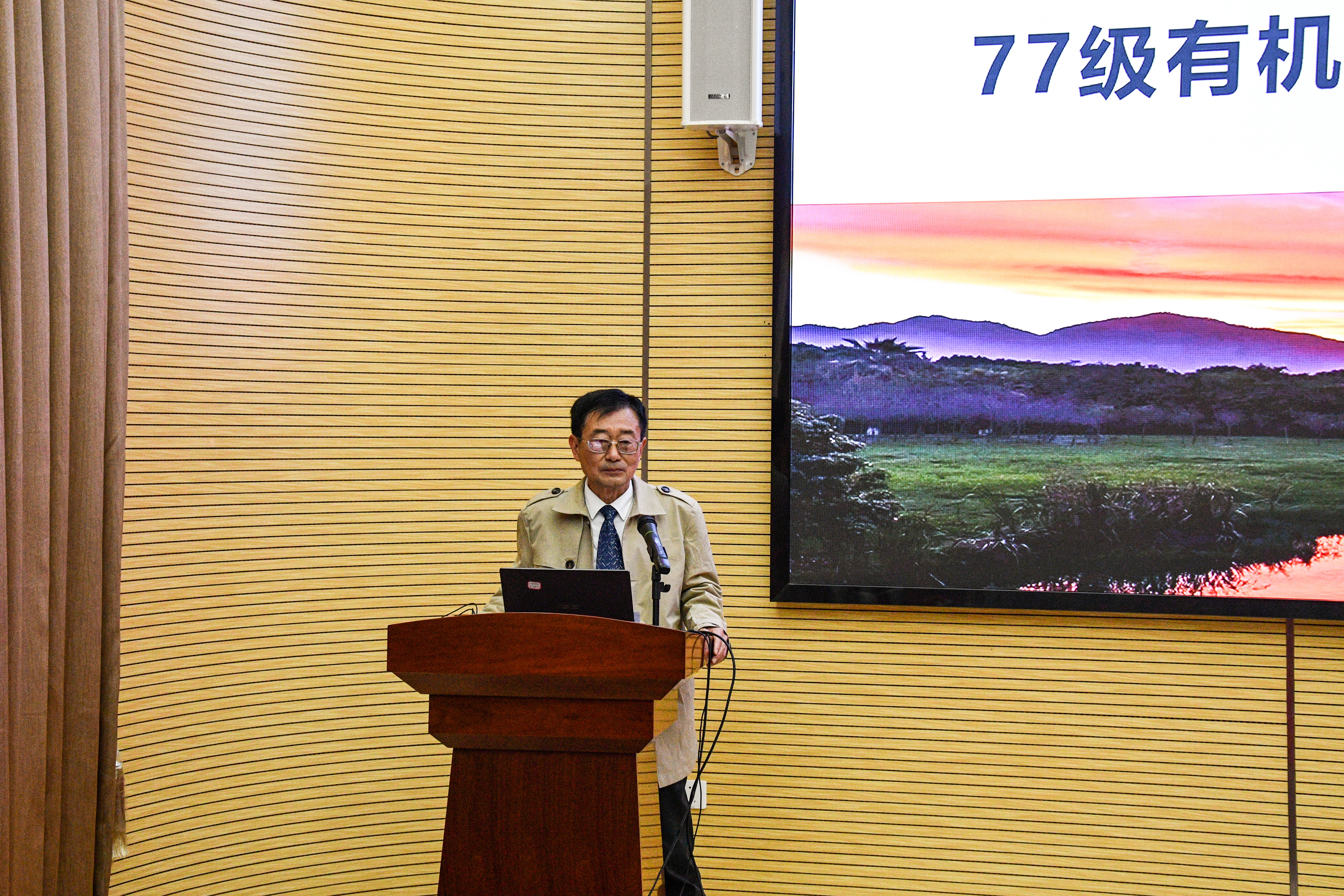 离开宏晖文体综合馆后,校友们乘车参观校园,欣赏旗山校区的美丽风光,并来到泉港楼参加学院的欢迎活动。欢迎会上,院党委书记施卫华上台致辞,他代表学院热烈欢迎77、78级校友们返校回家,并就学院学科发展、人才培养、科学研究、教育教学等各方面取得的成绩向校友们做汇报。施书记表示,学院的发展离不开校友们的支持与帮助,希望老校友们身体健康,万事如意,欢迎常回家看看、继续关心关注学院的发展。致辞结束后,校友们一同观看了学院宣传片,从中对当前学院的发展建设情况有了更充分地了解。随后,校友代表77级有机化工校友龚一星女士、78级有机化工校友彭超先生上台讲话。他们代表返校校友们感谢学院为他们举办了隆重的欢迎会、做足了准备工作,对学院六十五载艰苦创业、奋勇拼搏的历程感慨万千,为学院今日取得的优异成绩和巨大发展感到由衷的兴奋与自豪。