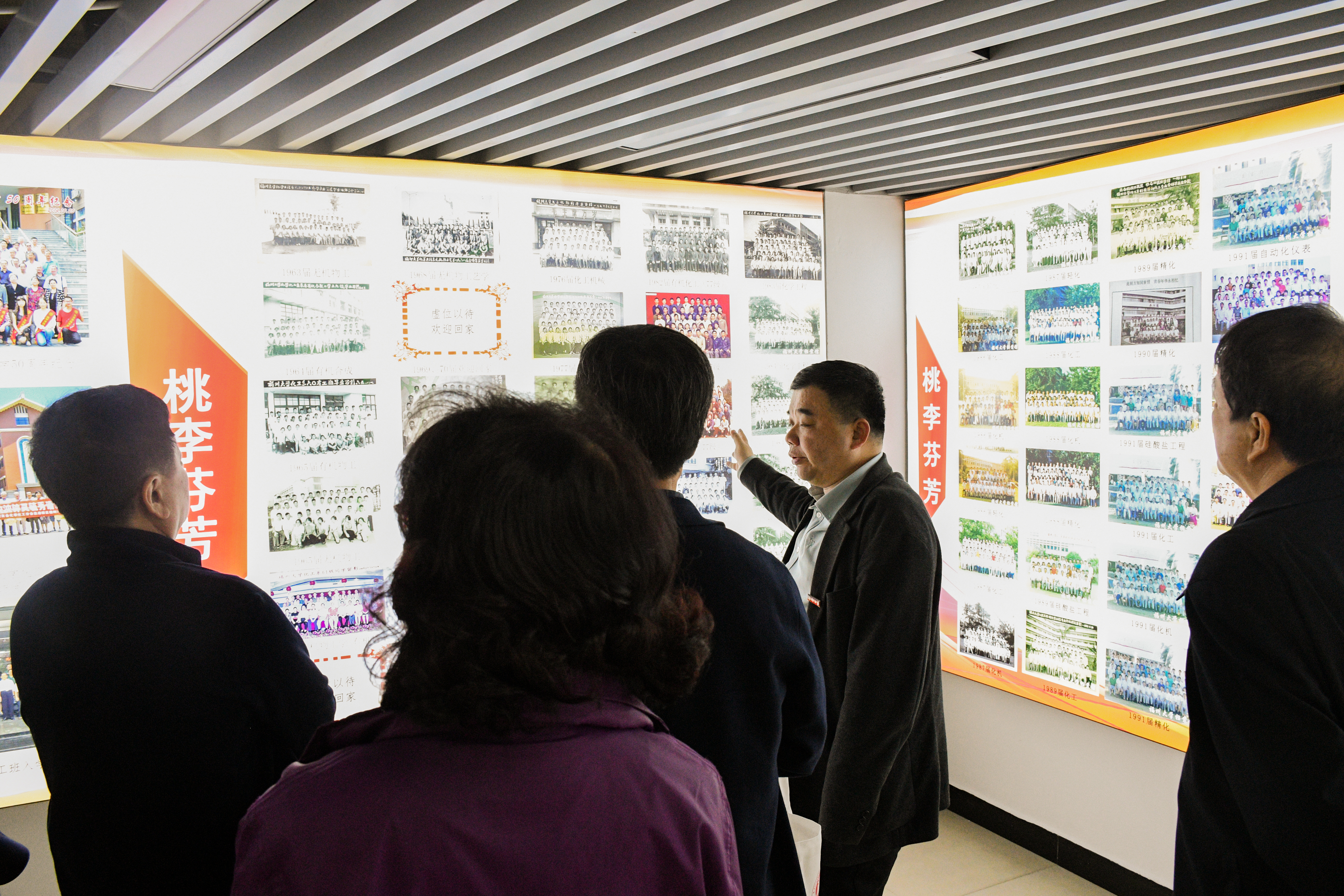 欢迎会结束后,校友们在侯琳煕常务副院长和林航副书记的陪同下,先后参观了学院的院史长廊、实验室、初心堂、教工之家和芳香厅等地方。一路上大家一同回忆曾经的青葱岁月,畅谈母校这几十年来的巨大变化,抒发对母校的祝福之情,并合影留念。