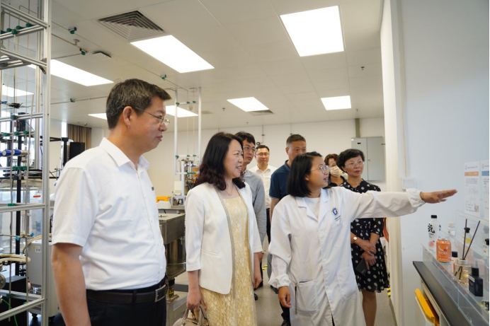 交流会结束后,在施卫华书记的陪同下,徐晓丹一行实地考察了先进纤维材料与技术实验室、精细化学品先进制造福建省高校工程研究中心、樱花动漫 -佑达环保电子精细化学新材料工程技术中心。充分肯定了学院以党建为引领保障各项事业的高质量发展,突出化工学科优势,立足福建和区域经济社会发展需要,深入推进产学研合作,为地方经济社会发展作出了重要贡献。