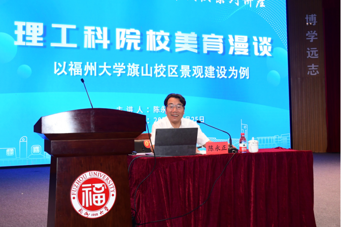 旗山校区景观建设为例》讲座。本次讲座在旗山校区图书馆博学厅开展,由学院党委书记林航主持,300余名师生共同参加。