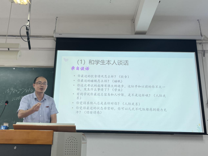 伍宇翔同志在向新辅导员介绍谈话技巧